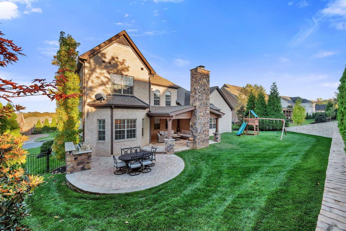 Beautifully maintained home in coveted Morgan Farms! Seamless indoor/ outdoor living spaces designed for those seeking an environment for entertaining and relaxing, year- round. Huge kitchen and island opens to a 2- story great room featuring a soaring stone fireplace as the focal point with flanking built- in bookcases. Grand foyer entry adjacent to an elegant dining and parlor room fit for your more refined gatherings. Over $ 150k invested in the outdoor living space featuring a large scale covered patio on travertine pavers, woodburning stone fireplace with gas starter, Bromic ceiling heaters and nearby grill island featuring “Delta Heat” gas grill, natural stone counter and under counter beverage fridge. Rare privacy created by mature landscaping ( fully irrigated) with flat backyard that is sure to become your favorite space for leisure time. Spacious primary suite on the main floor along with home office and large laundry with drop zone located near the rear staircase. Incredible bi- level bonus room upstairs perfect for movies, pool table, or playroom. 3 spacious bedrooms all with en suite baths. Private home gym currently outfitted with a Sunlighten infrared smart sauna ( negotiable) and is a perfect space for a Peloton. One of Brentwood’s most desirable communities, rich with amenities and convenient to top- rated schools, Smith Park, Cool Springs & I65. 1. 3 miles to Ravenwood HS, 1. 6 miles to Jordan Elementary, 1. 1 miles to Smith Park.