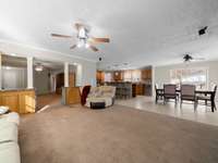 Inside, the open- concept kitchen, dining, and living area is perfect for gathering with family or friends, while the formal living room offers a quieter space to unwind. Three bedrooms and two full baths provide plenty of room, and the built- in office area makes working or studying from home simple and convenient.