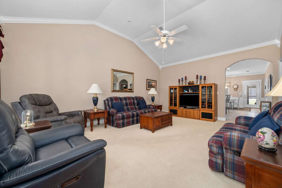 Discover effortless one- level living in the sought- after Innsbrooke Crossing community. This home welcomes you with a spacious living room that seamlessly flows into the kitchen and eat- in area, creating the perfect layout for both everyday living and entertaining.