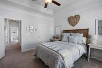 Upstairs offers two generous en- suites. The third bedroom ( currently utilized as a home office) with its private bath is conveniently located at the first floor entrance. Outdoor living is easy with a private rear deck, plus a two- car garage for ample storage or parking. All of this just steps away from its walkable neighborhood inclusive of restaurants, shopping, coffee shops, and even a dog park—everything you need at your doorstep!