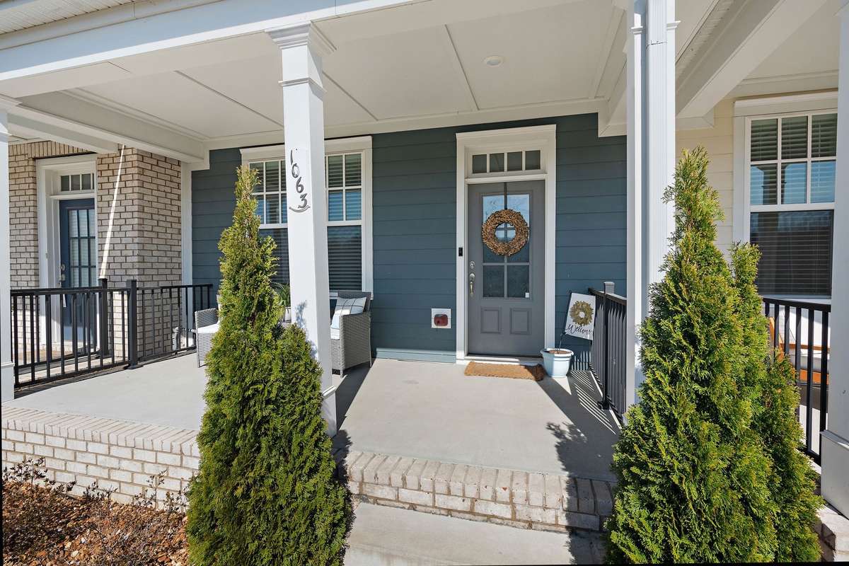 NOT A MISPRINT! ASSUMABLE 2. 5% INTEREST RATE! Welcome to the vibrant community of Burkitt Commons in Nolensville! This stunning, exterior- facing townhome feels like new and is move- in ready. Charming covered front porch with classic rocking- chair appeal - perfect for both morning coffee or evening wind down! The main level offers a spacious living/ family room, dining area, and bright kitchen with breakfast nook, large island, pantry, and upgraded finishes. Gorgeous hardwoods, granite and quartz counters, custom tile, and designer touches throughout!
