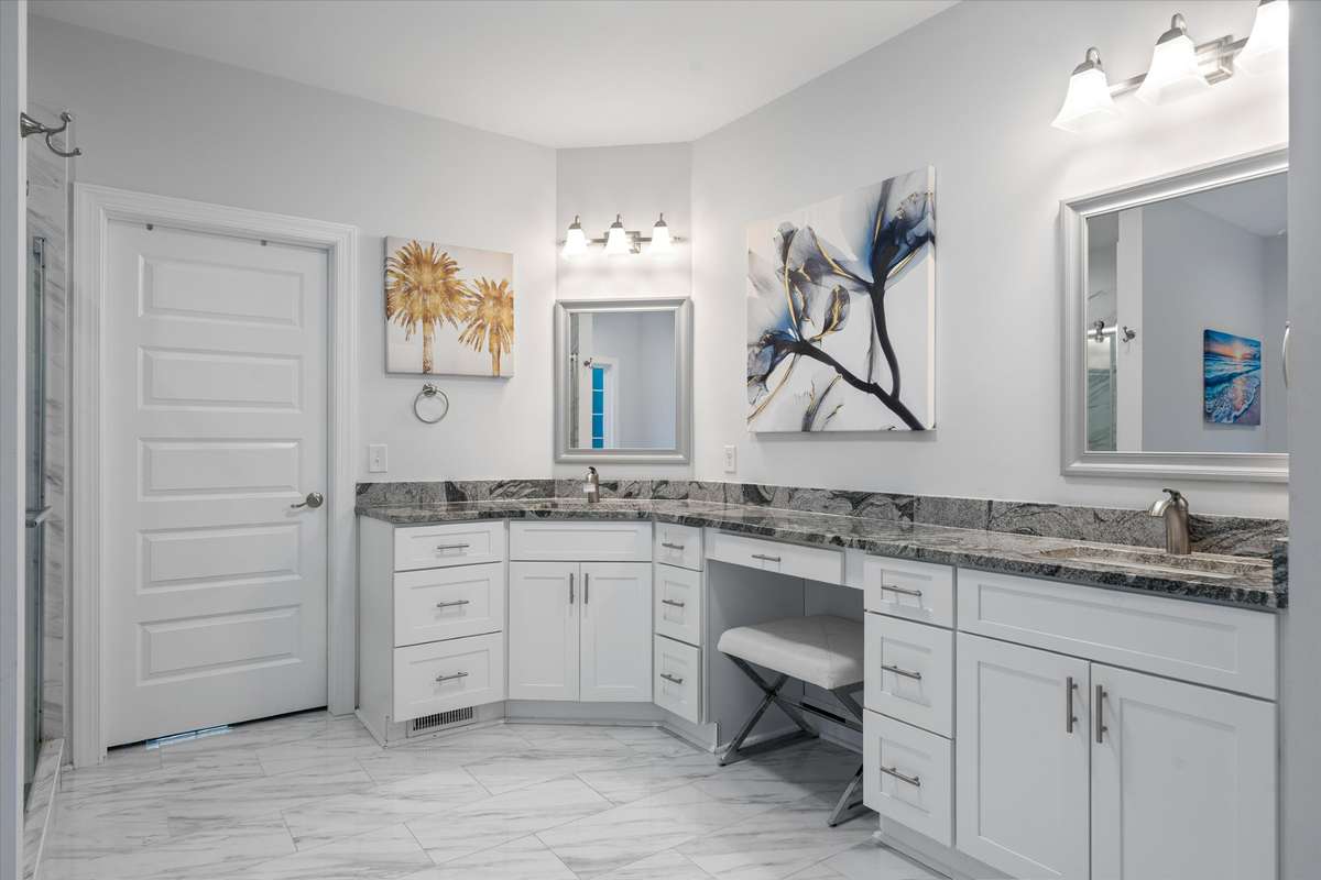 Located in the prestigious Five Oaks Golf & Country Club community, this 5, 900 sq ft home sits on a quiet half- acre cul- de- sac lot offering exceptional privacy. This flexible floor plan features 5 bedrooms and 4. 5 baths, including a primary suite on each level, ideal for multigenerational living. Upon entry, a formal office and formal dining room create a welcoming and polished first impression.