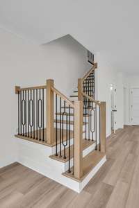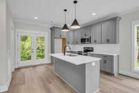As you step through the front door, you’re greeted by a stunning staircase and a spacious living area, perfectly complemented by a convenient half bath. The heart of the home is the chef’s kitchen, featuring premium appliances, designer finishes, and a layout ideal for entertaining.