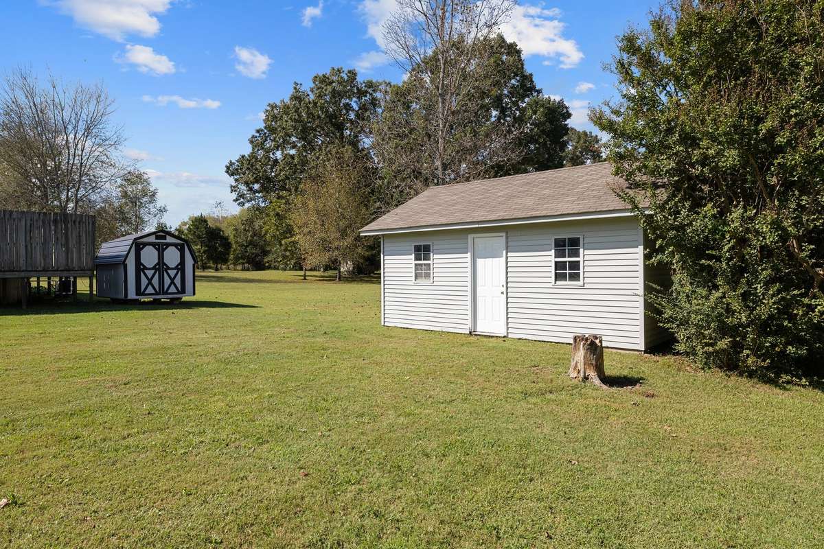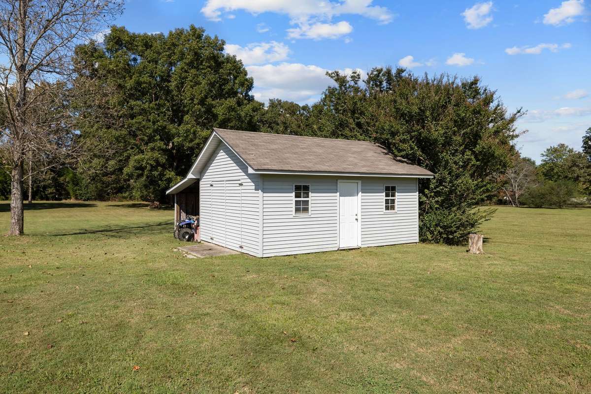 Welcome to this charming 4- bedroom, 3- bath brick home nestled on 1. 37 acres, offering the perfect blend of comfort, space, and outdoor living. Step inside to find a functional layout with 2 bedrooms and 2 full baths on one end of the home, and the other 2 bedrooms and bath on the opposite side designed for both everyday living and entertaining. Hot tub will remain with the home. The property also includes a 16x20 storage building with an attached 10x20 lean- to- - ideal for hobbies, storage, or a small workshop. An attached carport adds convenience and shelter for your vehicles. Hangers put in hardwood floors 7 years ago, roof was put on in 2016, new HVAC installed in April of 2025. ( Above ground pool will be taken down by seller as it is very old.)