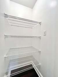 The dining and living areas connect with plenty of room to gather. Down the hall you will find a pantry for extra storage, two guest bedrooms with generous closets, and a full bath with its own linen closet. The primary suite is a retreat all its own with private access to the deck and an oversized bathroom that makes a statement. It features triple mirrors over the sink, built in cabinetry, a large closet with shelving, and an additional linen closet.