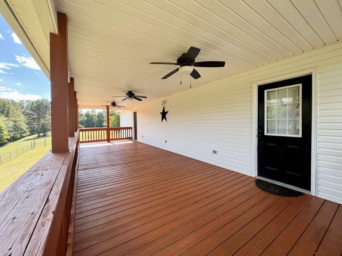 The heart of the home features vaulted ceilings and an open layout that feels bright and inviting. The kitchen includes appliances that remain, a wraparound island with a breakfast bar, and easy access to the expansive back deck. This outdoor living space is a true highlight with ceiling fans and sweeping panoramic views of the Tennessee hills that you will never get tired of.