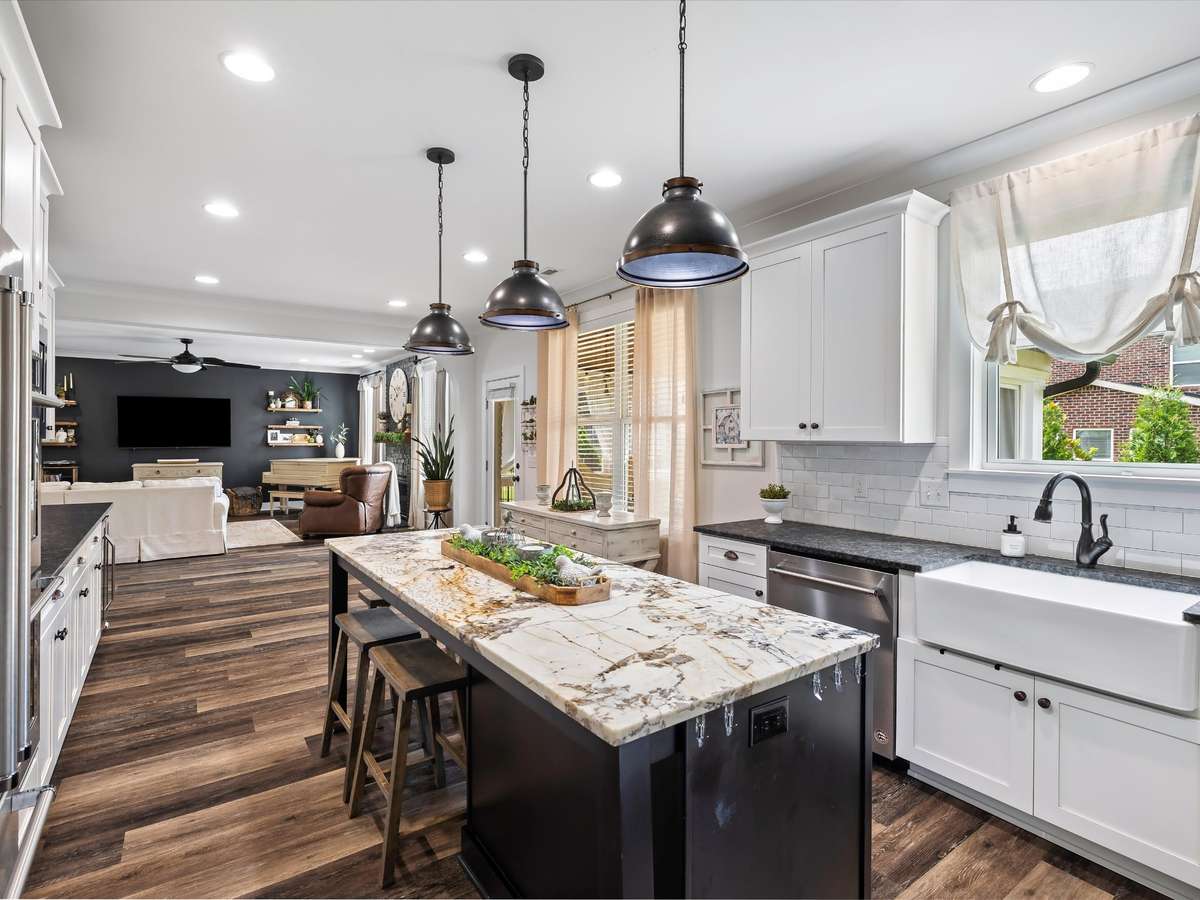 Seller is offering a 1% rate buy down. If you can qualify for up to $ 765k, you can likely qualify to buy this rare gem in Williamson County —a fully reimagined residence where timeless design meets meticulous renovation. Gutted to the studs and rebuilt with uncompromising quality, this stunning home boasts a gourmet kitchen featuring all Kitchen- Aid appliances, sleek black leathered granite countertops, a wood hood, a pull out spice rack, two pantries, custom cabinetry, a built in beverage cooler and wine fridge and an impressive 8- foot island with seating for five—perfect for both casual meals and entertaining. Every room showcases premium finishes and thoughtful upgrades, creating an atmosphere of understated luxury. The downstairs bedroom offers a private retreat with a full walk- in tiled shower, ideal for guests or multi- generational living. Unwind in the screened- in porch outfitted with electricity, offering the perfect space for morning coffee or evening relaxation—rain or shine. Whether you’re enjoying indoor sophistication or outdoor serenity, this home delivers elevated living at its finest. A fully encapsulated crawlspace with a dehumidifier was installed in 2020, a new roof was installed in 2020, a dual- zone climate control HVAC was installed in 2018 and the attic was insulated with spray foam in 2020 for year- round comfort and energy efficiency. Coat closet under the stairs was expanded and reinforced by a GC to serve as a storm room. Side yard fence could be moved closer to driveway, pending HOA approval, creating ample room for an in- ground pool. Estimate attached in the media section. Full list of upgrades for 2020 rebuild also in media section. This exquisite home is a MUST SEE!