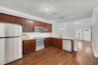 Enjoy New Flooring and Plush Carpeting, Stainless- Steel Appliances, Modern Light Fixtures, a Brand- New Hot Water Heater, Garage Door Openers. Washer and Dryer is included for your convenience. The attached 1- car garage adds both functionality and style.