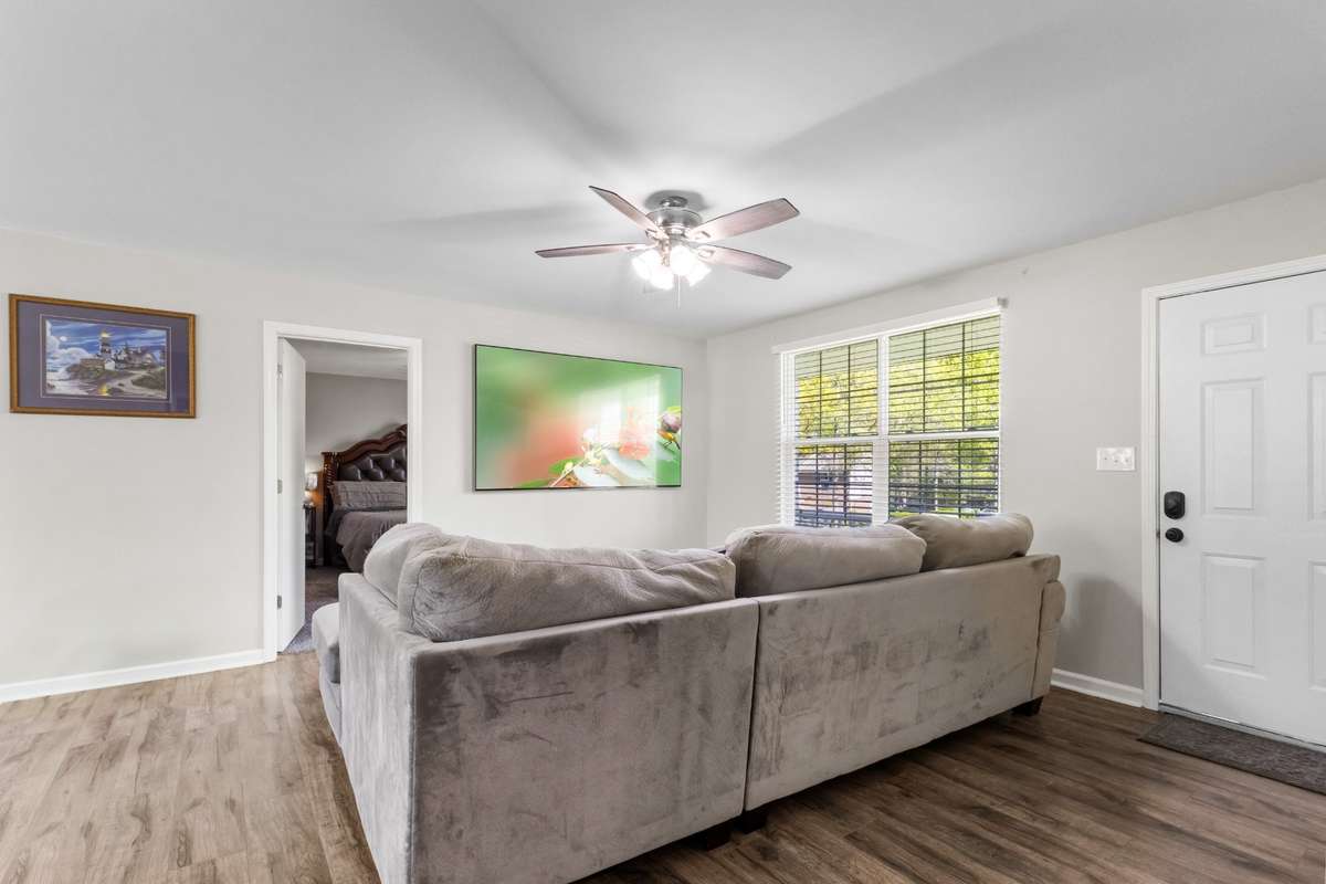 Beautifully renovated 3- bedroom, 2- bathroom ranch style home nestled in May Apple Estates boast a harmonious blend of modern updates and classic charm. Upon stepping inside, you are welcomed by the open- concept living area featuring laminate flooring throughout the main living spaces and flowing with natural light. The kitchen features SS appliances and white cabinets that really brighten up the room. Unwind after a long day in the primary bedroom and private en suite. Each bedroom is designed for comfort, with plush carpeting and ample closet space. Outside, enjoy the serenity of a spacious deck overlooking the expansive backyard—perfect for entertaining or relaxing. The freshly landscaped yard adds to the home' s curb appeal. Located just minutes from local schools, shopping, and dining, this home combines modern living with everyday convenience. Don' t miss out on this slice of paradise! Schedule your showing today.