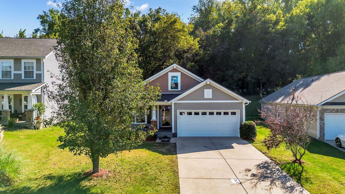 Welcome to this beautifully maintained 3bd/ 2ba Beazer- built home updated with upgrades galore! Set on a private lot, this open floorplan features gleaming hardwood floors, upgraded tile in Kitchen + Baths, & Laundry room. Gorgeous quartz countertops throughout and new backsplash in kitchen. Recently replaced roof, windows, and HVAC will give you peace of mind. Extras include: Water softener, Epoxy garage floor, Garage storage and cabinets. Outside, the private backyard overlooks a mature treeline and is the perfect setting to enjoy the tuscan stone patio + fire pit while catching a glimpse of the visiting wildlife. Minutes away from the greenway walking and biking trails and the brand new Tanger Outlets shopping, dining and entertainment! PER FEMA MAPS, THIS PROPERTY IS NOT LOCATED IN A DESIGNATED FLOOD ZONE REQUIRING FLOOD INSURANCE. THE SELLER HAS NEVER BEEN REQUIRED TO CARRY FLOOD INSURANCE.