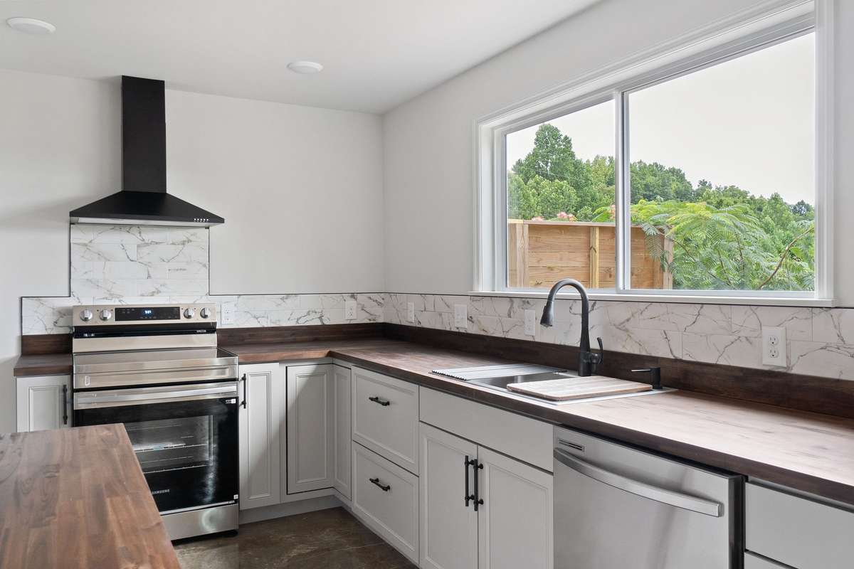 Upstairs, a second private living space includes 2 more bedrooms, 1 bathroom, an extra- large living room, walk- in pantry, laundry, and another spacious deck overlooking gorgeous valley views. Both levels have been outfitted with modern fixtures, foam insulation, and a tankless water heater for energy efficiency.