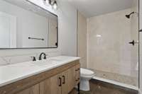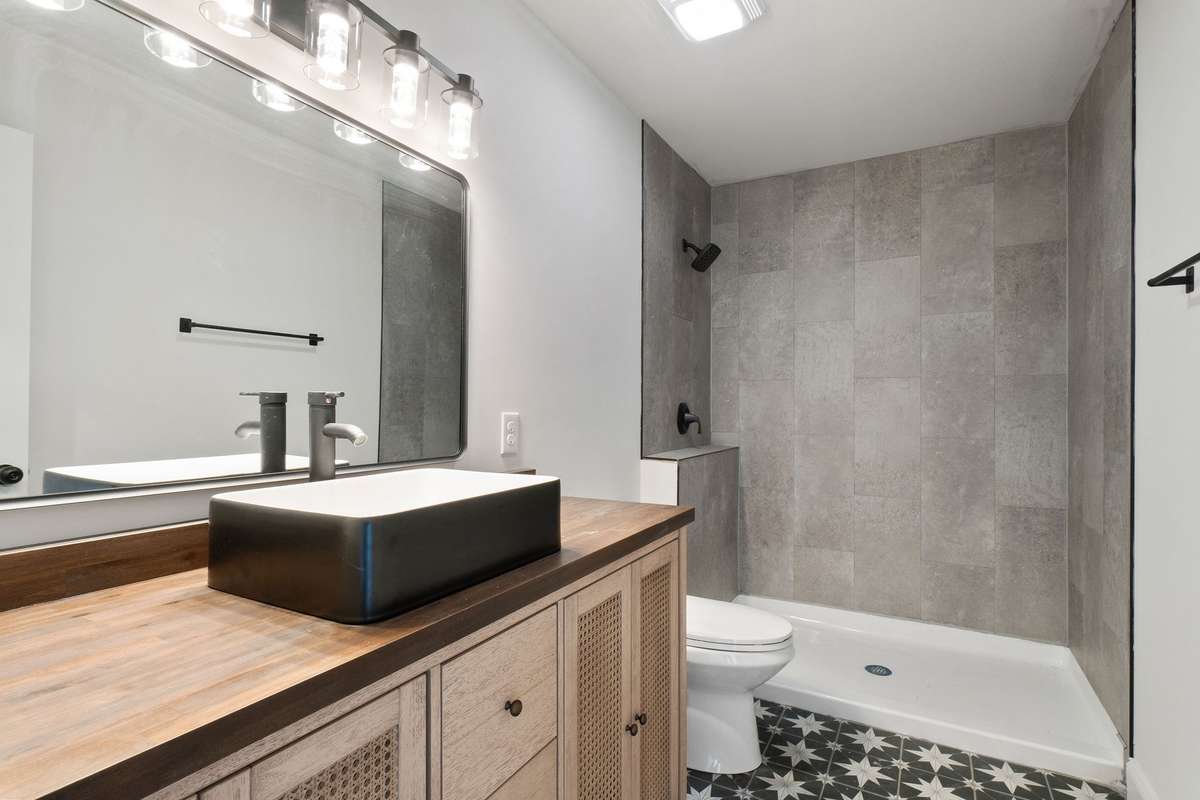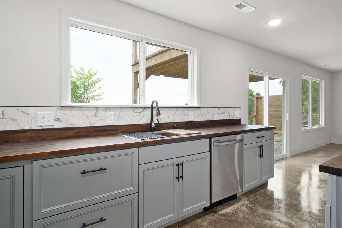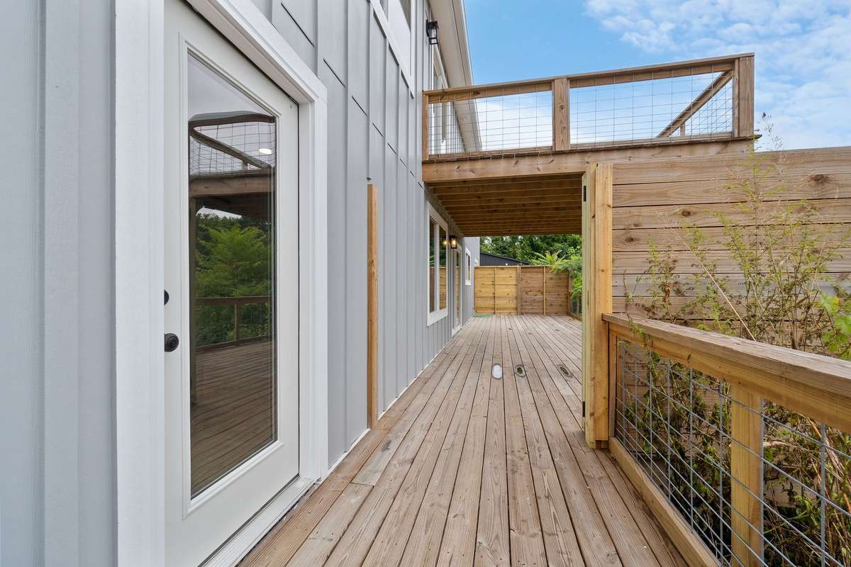 This modern home offers exceptional flexibility with a thoughtful layout and high- end finishes throughout. The main level features an open- concept living room and kitchen with custom tilework, sleek finishes, and polished concrete floors with radiant heat. You' ll find 2 bedrooms, 2 full bathrooms, a walk- in pantry, private deck, and in- unit laundry.