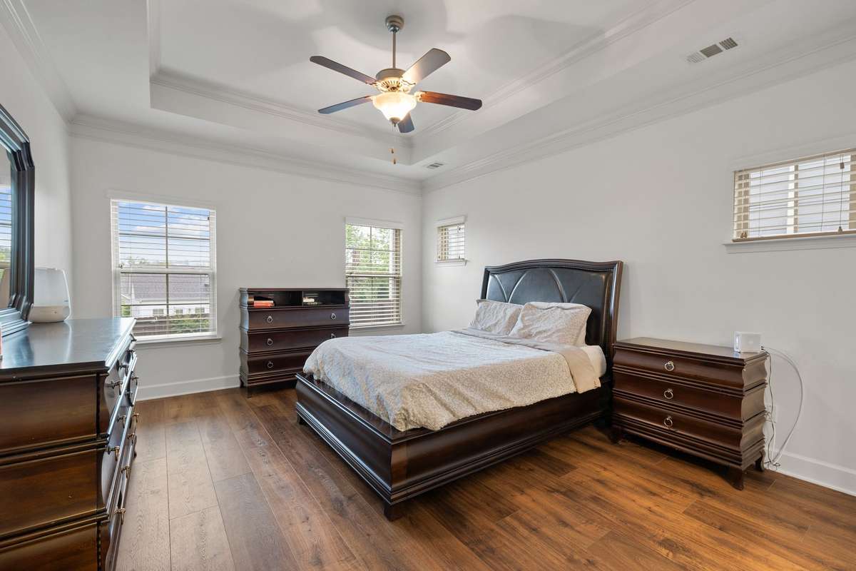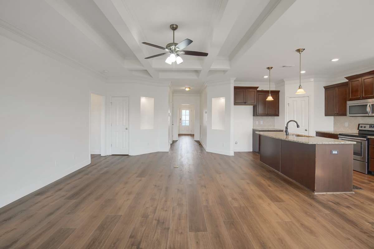 Discover the charm of this beautiful single- level home in Burkitt Village. This all- brick residence features a convenient two- car garage with individual doors that provide easy access. Enjoy the serene privacy with no neighboring homes directly in front, and take pleasure in delightful morning and evening strolls along the welcoming sidewalk. Step inside to find a warm and inviting atmosphere, highlighted by a cozy gas fireplace and granite countertops in the kitchen. Meticulously maintained, this residence promises a comfortable and enjoyable living experience. The covered back deck is ideal for relaxation or entertaining guests, while a backyard storage building provides ample space for your convenience. With coffered ceilings and detailed trim work throughout, this charming home is a must- see. Don' t let this opportunity pass you by!