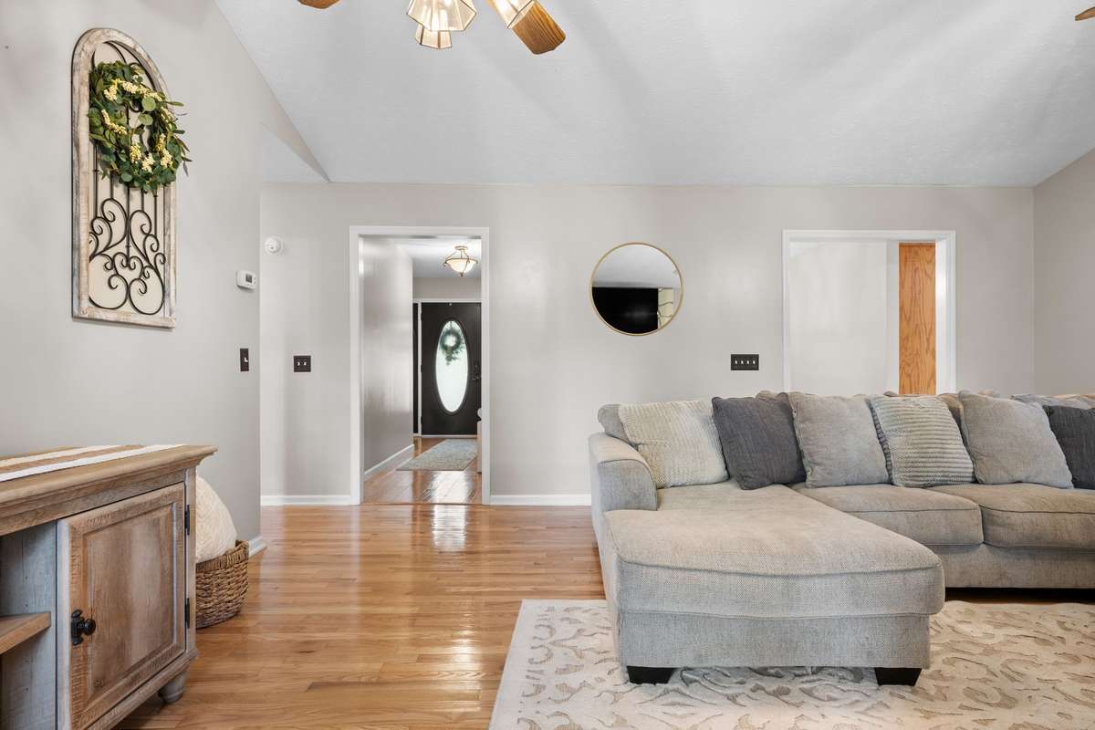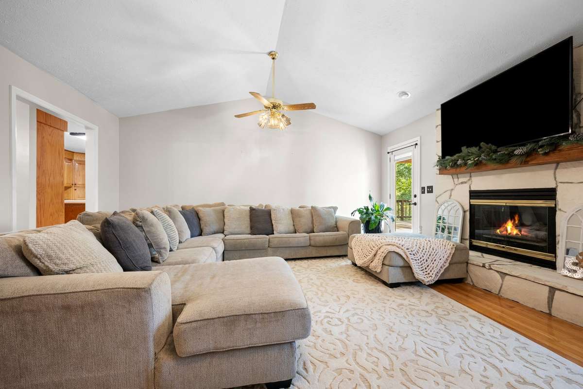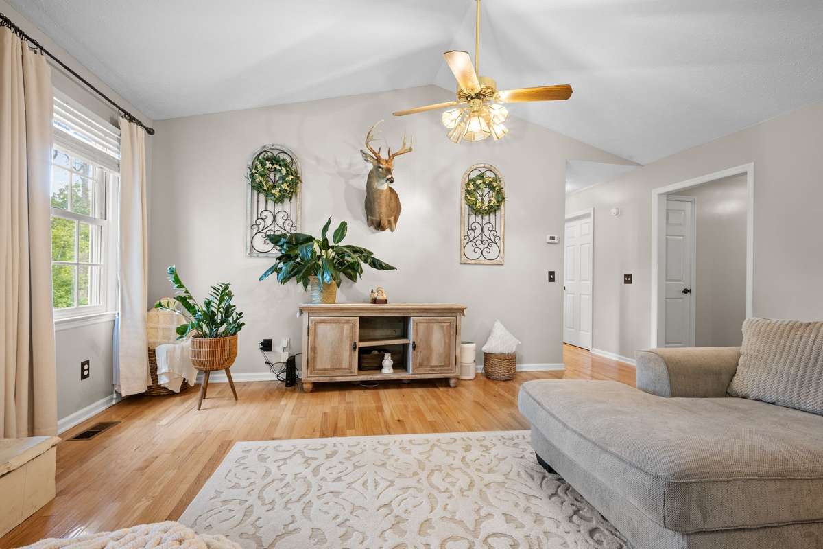 What a great place to raise your family! This home was custom built in 1991 and has 1835 feet finished on main level with a partially finished basement. The great room has cathedral ceiling, FP with gas logs! There are two bedrooms & 1 full bath on one end of the home. The master bedroom is on the opposite end and is spacious. It has a sitting area, two walk- in closets one being 9x8 along with a full bath. There are french doors with access to the back deck. The kitchen is improved with an island that has storage and seating area, oak cabinets, stainless appliances that remain, separate dining room & a large utility room with shelving. The two car garage has electric openers & is on the main level. The basement is improved with a large den/ rec room, separate room for an extra bedroom or office, a large half bath, shop area with built- in work area & a storm shelter underneath the front porch. The home has hardwood flooring throughout with tile flooring in basement. There is a large deck on back with a trellis awning overlooking the back yard. You can enjoy the wildlife and the peaceful country living, but only 10 minutes from downtown Waverly. There is a concrete driveway, sidewalk, a 30x7 covered front porch with aggregate flooring. The lot is 6. 30 acres! Set up appointment to see this lovely home!