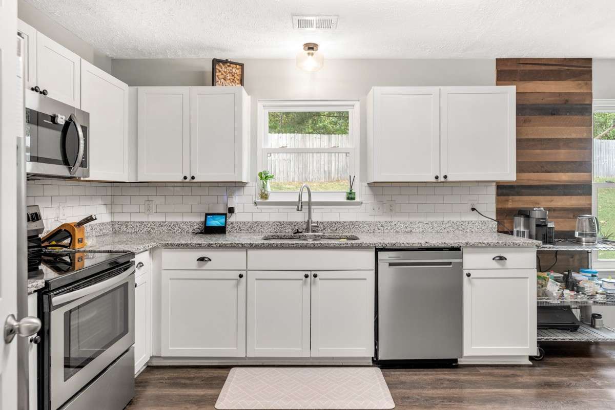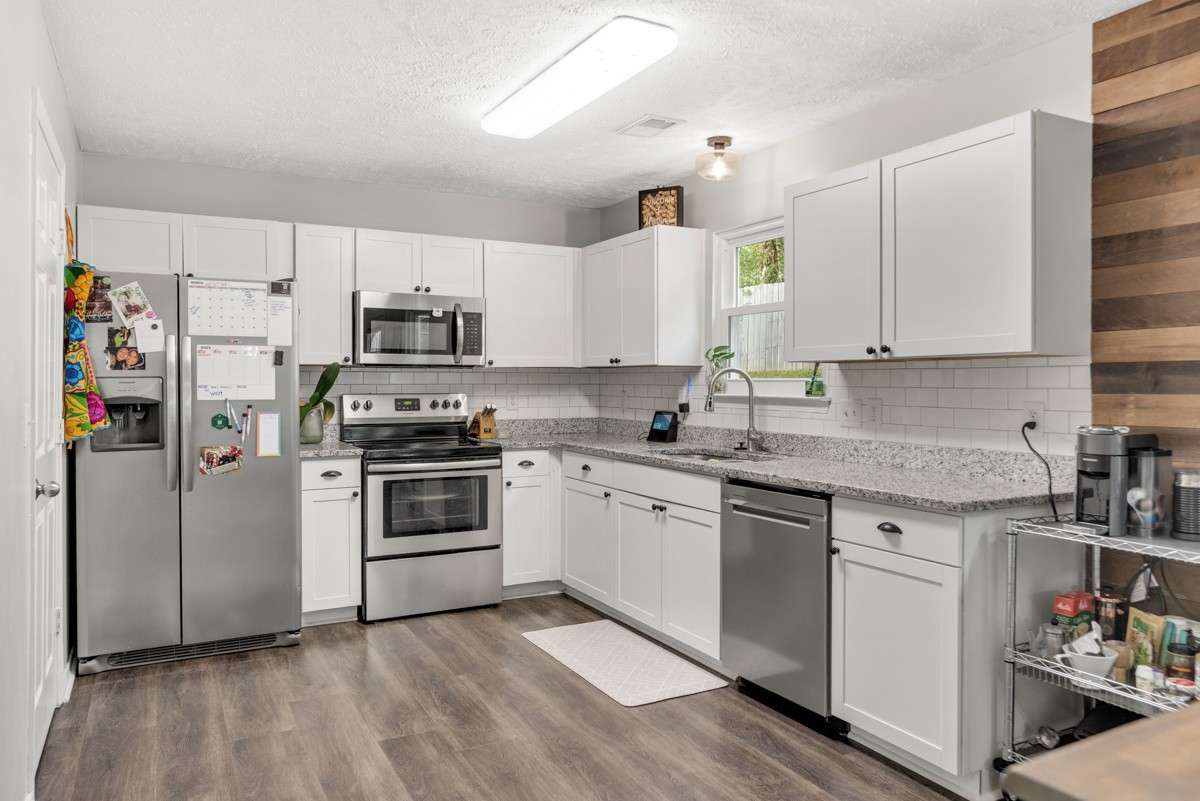 The kitchen is equipped with new custom pantry shelving, and all stainless steel appliances remain, including the refrigerator in the garage. Lighting and ceiling fans have been replaced throughout the home, adding to its modern updates. The spacious yard provides room for outdoor enjoyment, while the private setting offers peace and quiet. This home combines top of the line renovations in a desirable location, with the largest lot and a privacy fenced backyard! It’s a true must see!