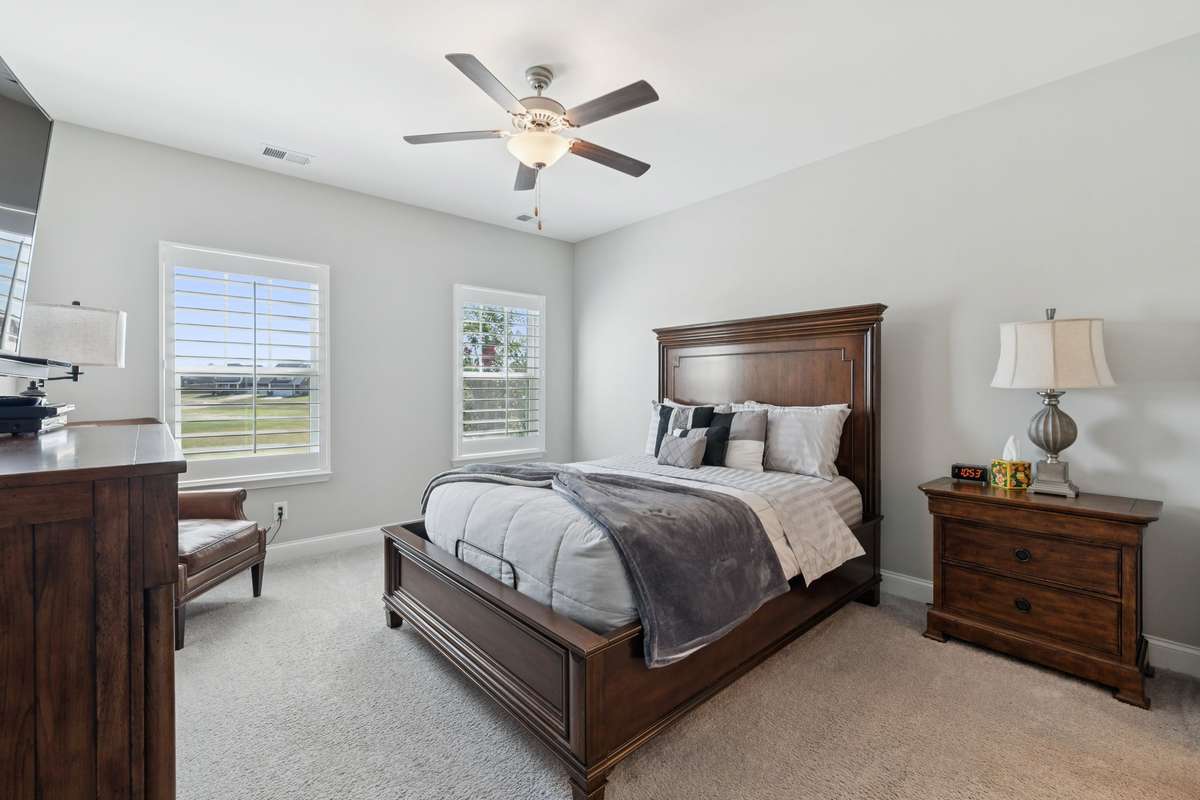 The “Ashleigh” floor plan features an open layout filled with natural light, highlighted by double windows in both the great room and the primary bedroom.