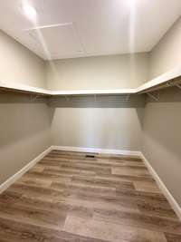 with a walk in shower with beautiful detailing, and a double vanity complete with storage. Another custom