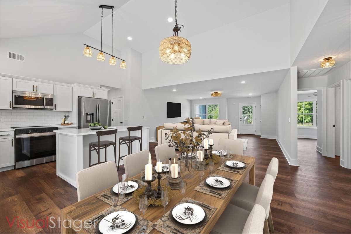 Craftsman built single level home on one and a half level acres with a quarter acre of woods. Home features a very large primary suite with an extra niche perfect for office/ nursery/ gym. Primary bath has a designer double vanity and oversized tile shower. 2 more bedrooms as well as a flex space that could be a guest room/ hobby room/ home office/ playroom. . You’ll love the chefs kitchen with full stainless appliance package, white shaker cabinets, quartz countertops and pantry. Mud room with wash sink. Closet space to dream of. The home has no carpet, instead enjoy lifeproof coretec LVP that’s durable and waterproof. On the outside enjoy a 16x8 covered porch leading to a 21x16 patio. For car enthusiasts an oversized 24’x26’ garage. One year home builders warranty provided. Home is in last stages of construction. Photos available upon completion. Come see it before it’s gone!