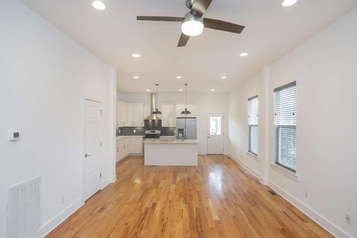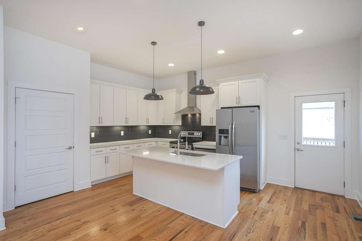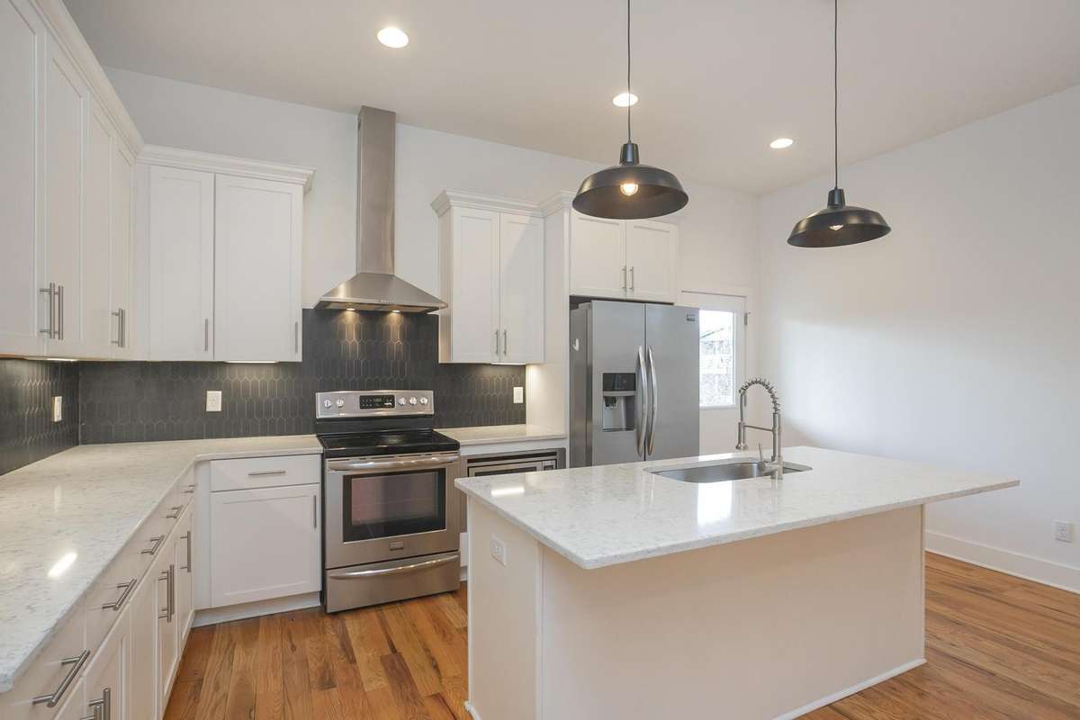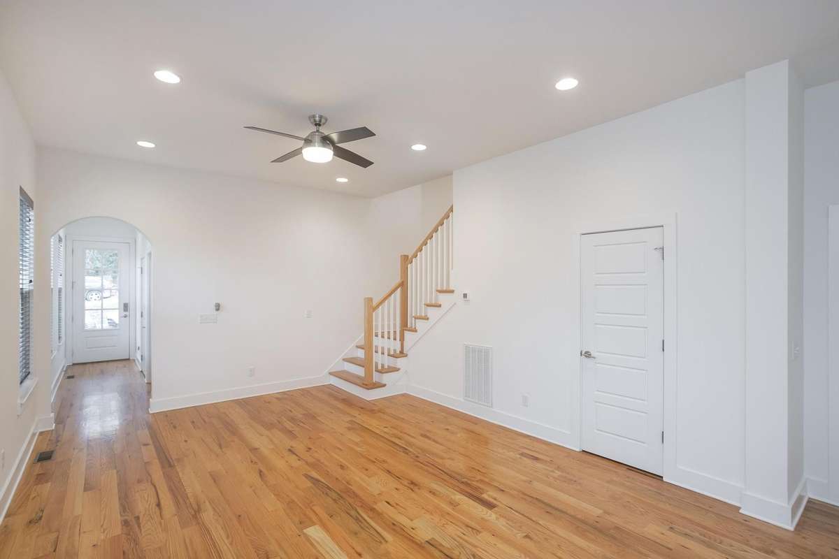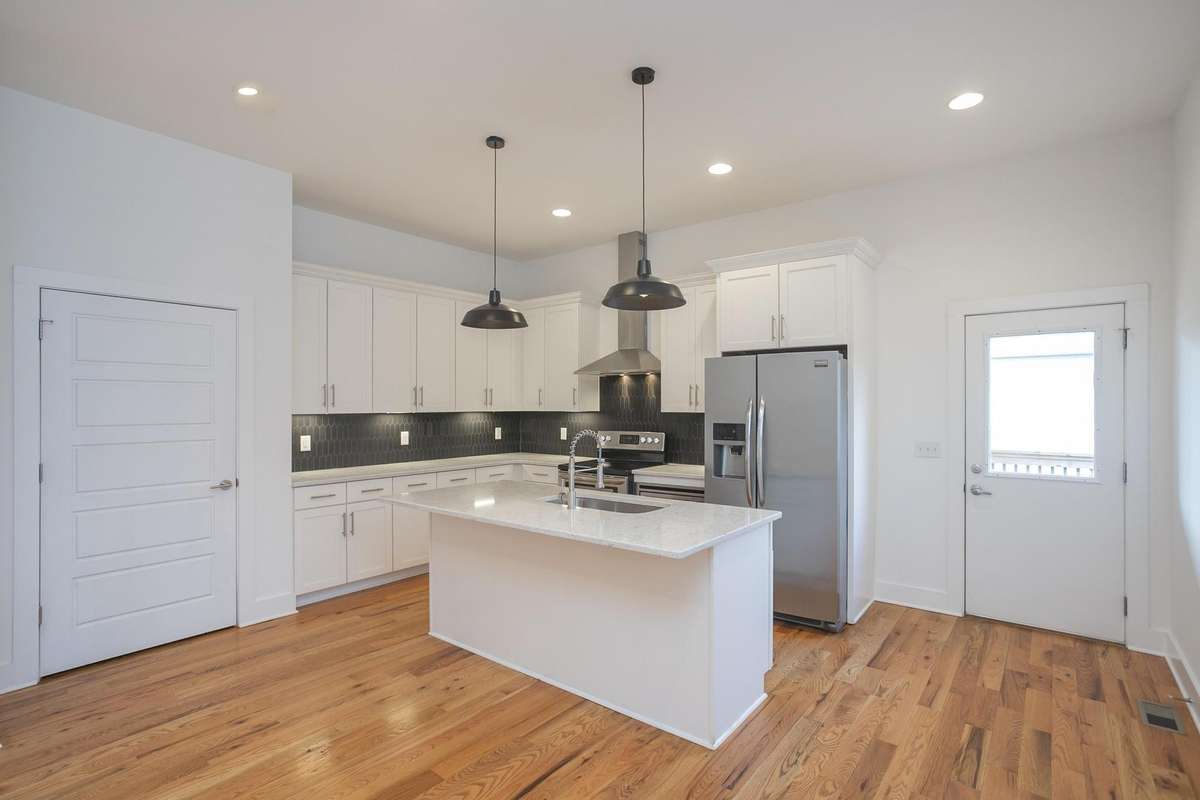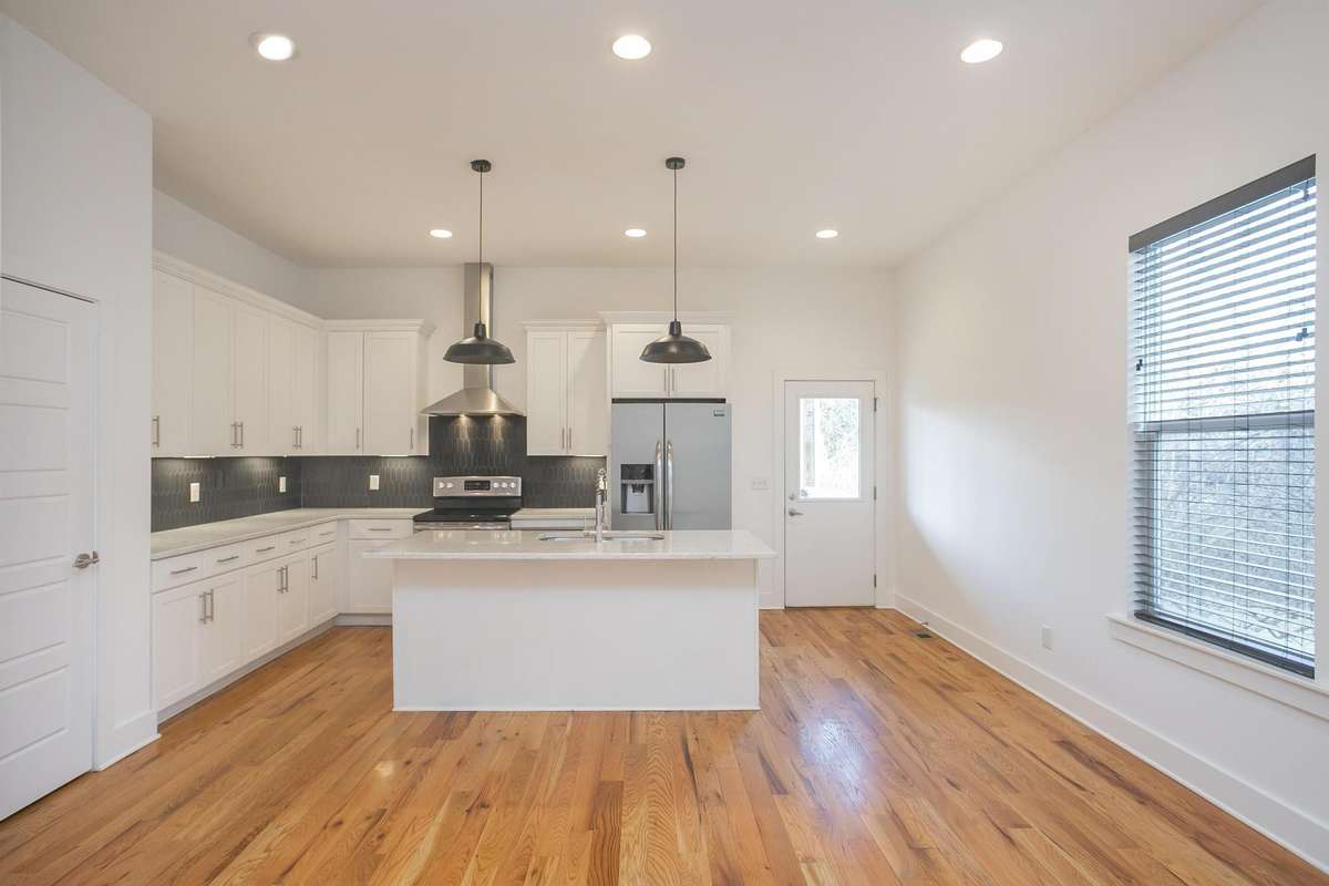 Step inside this move- in ready, sleek and modern 2017 build in the heart of East Nashville! This 3 bedroom, 2. 5 bath home features and open living room/ dining/ kitchen layout with beautiful hardwood floors, nice contemporary finishes throughout and tons of natural light. Kitchen has quartz countertops, stainless appliances, and kitchen island that provides additional seating. Huge primary suite has vaulted ceilings, walk- in closet, bathroom with double vanities and oversized shower and separate private covered deck! Additional bedrooms also have walk- in closets. Separate laundry room and washer/ dryer remain! One car garage + parking pad provides plenty of parking for you and guests. Nice covered back deck is perfect for entertaining and overlooks a privacy fenced- in back yard. Don' t miss this great price! VA loan is assumable by another veteran- - take advantage of this 3. 375% interest rate!