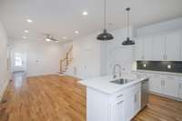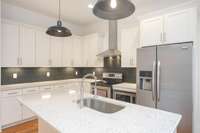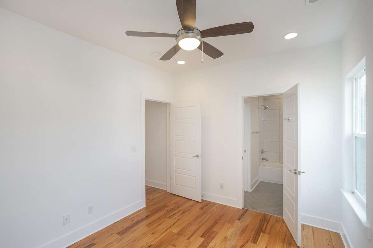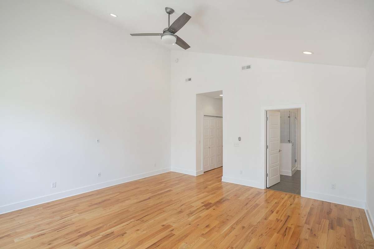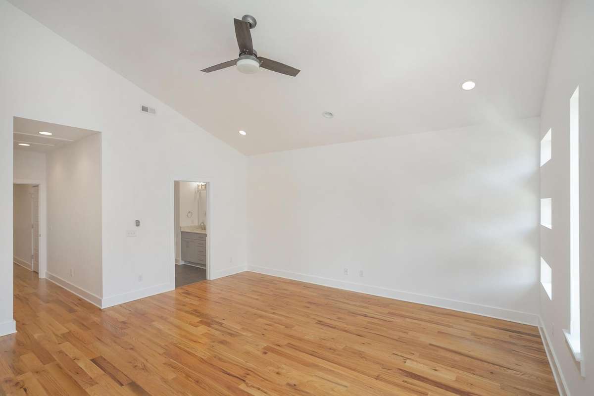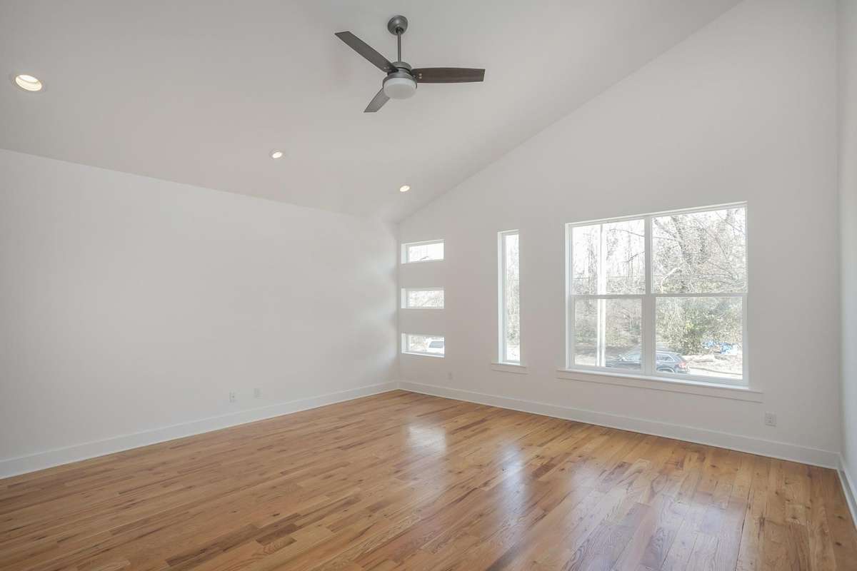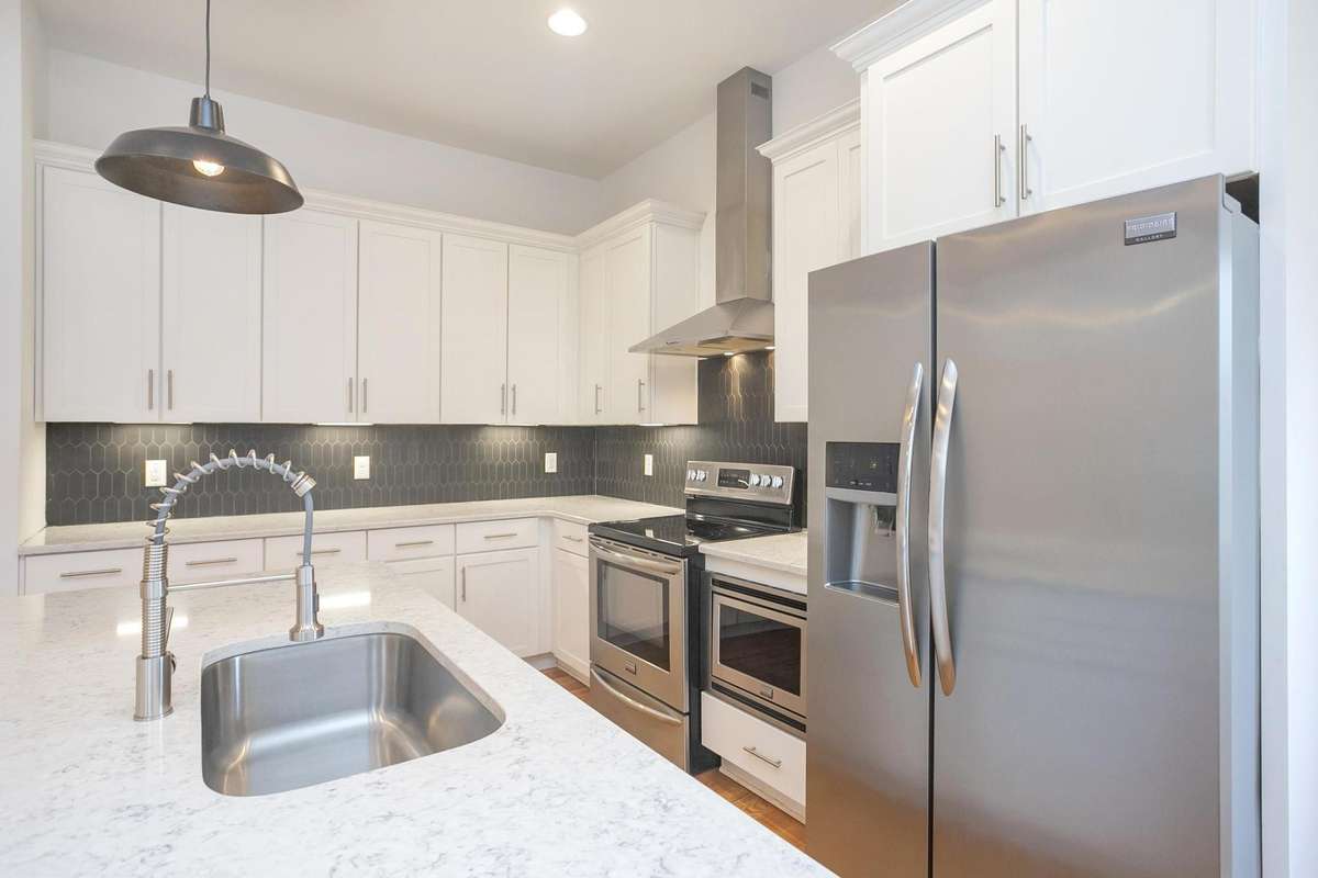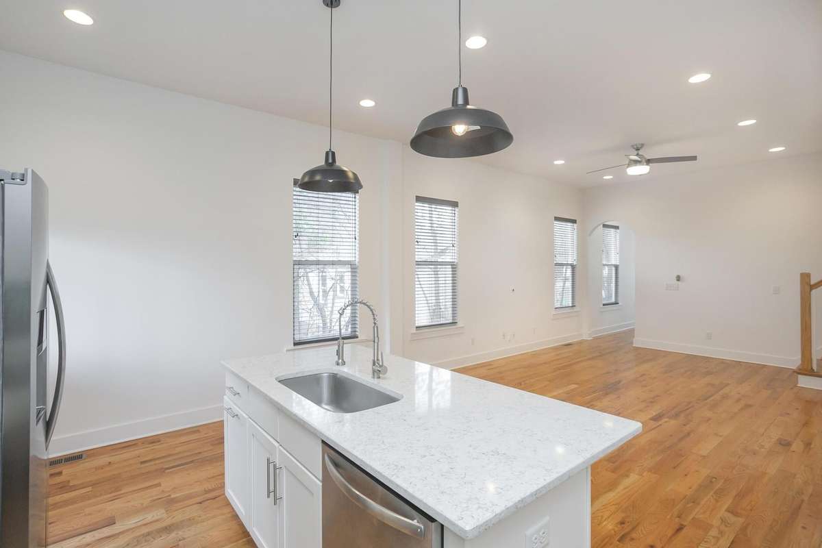 Step inside this move- in ready, sleek and modern 2017 build in the heart of East Nashville! This 3 bedroom, 2. 5 bath home features and open living room/ dining/ kitchen layout with beautiful hardwood floors, nice contemporary finishes throughout and tons of natural light. Kitchen has quartz countertops, stainless appliances, and kitchen island that provides additional seating. Huge primary suite has vaulted ceilings, walk- in closet, bathroom with double vanities and oversized shower and separate private covered deck! Additional bedrooms also have walk- in closets. Separate laundry room and washer/ dryer remain! One car garage + parking pad provides plenty of parking for you and guests. Nice covered back deck is perfect for entertaining and overlooks a privacy fenced- in back yard. Don' t miss this great price! VA loan is assumable by another veteran- - take advantage of this 3. 375% interest rate!