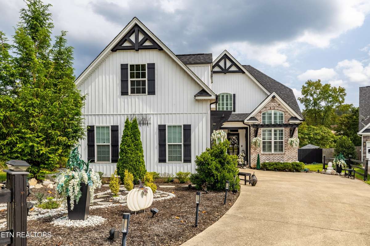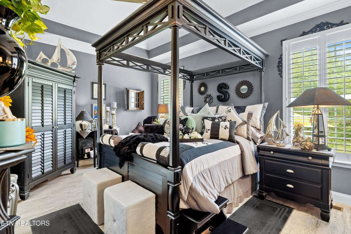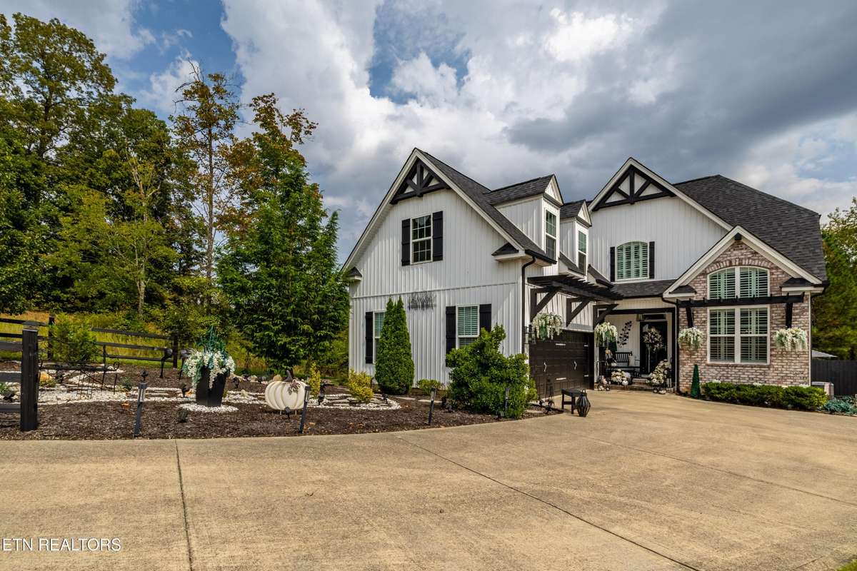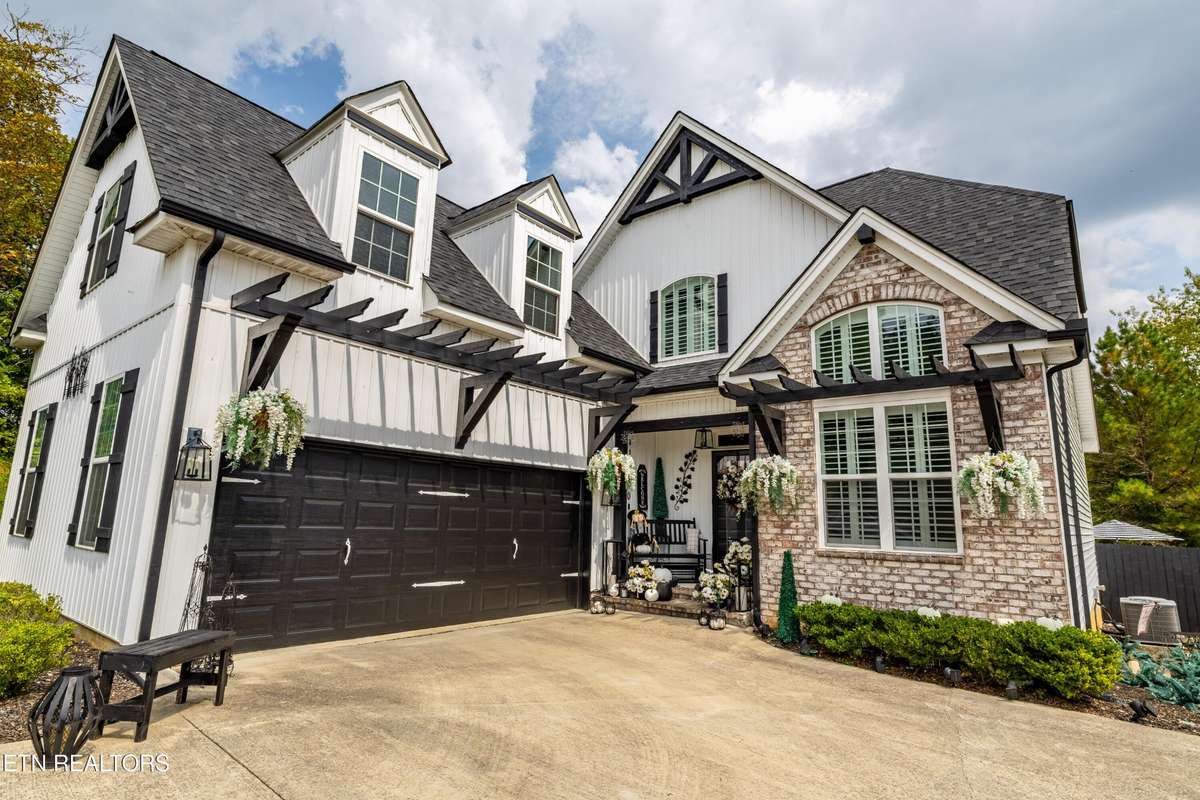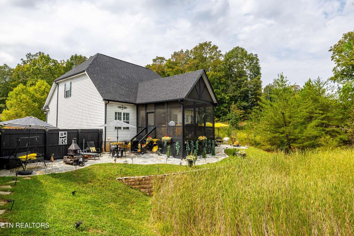 Welcome to this beautiful Lenoir City home, featuring thoughtfully designed finishes and plenty of living space. Inside you will find interior trim details that include crown molding, wainscoting, 5- panel molded doors, decorative beams in the living room and a coffered ceiling in the eat- in kitchen. The main- level primary suite features a grand trey ceiling with crown molding, a jetted tub, walk- in tile shower and walk- in closet. The kitchen is open to the living room with a large island, perfect for entertaining. Stainless steel appliances, including the refrigerator and wine fridge, complete the kitchen. Custom shutters and blinds accent every room including the garage. All bedrooms including the great room and bonus room have ceiling fans. Cable is hardwired in all rooms and the garage. The dining room can also serve as a sitting area or home office. Upstairs offers two additional bedrooms and one bath, plus a large bonus room with a walk- in closet, giving flexibility for guests or hobbies. Outdoor spaces include a screened deck overlooking the retention pond, where summer cattails create a beautiful natural backdrop. The screened deck features additional screening installed beneath the deck boards, plus a vaulted tongue- and- groove ceiling accented by a beam and ceiling fan. It is also pre- wired for cable, making it easy to enjoy TV outdoors. There are multiple flagstone patio areas in the backyard and around the retention pond which are perfect for relaxing and entertaining. Located at the end of the street and within city limits, this home combines comfort, style, and privacy. Buyer to verify all information including square footage.