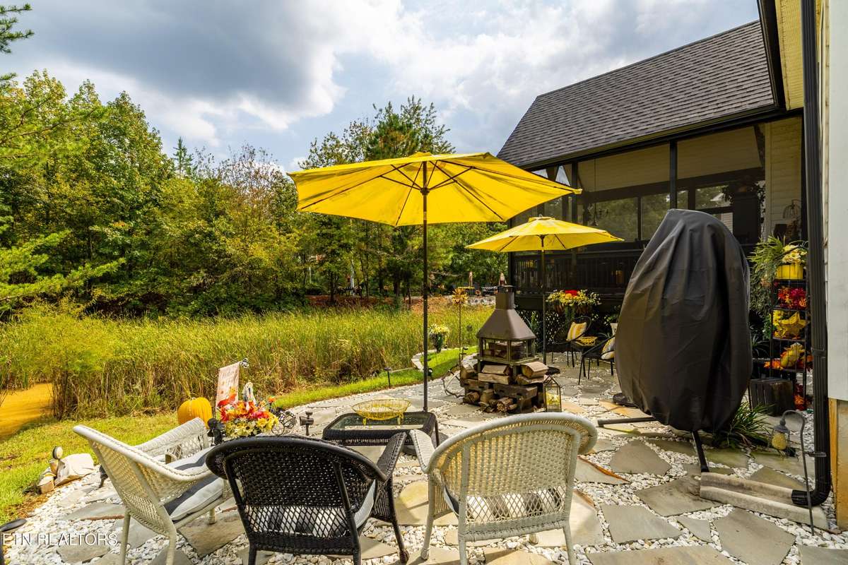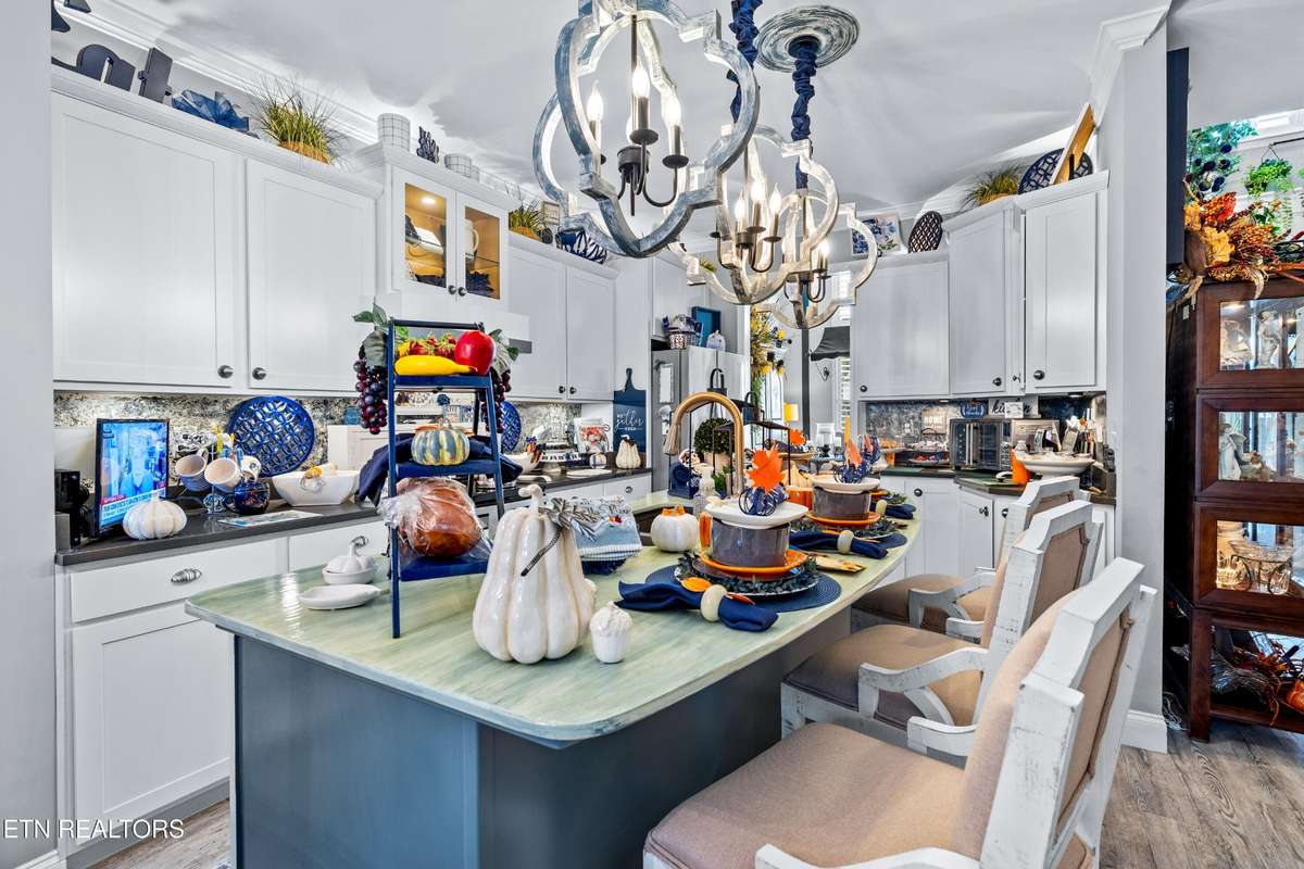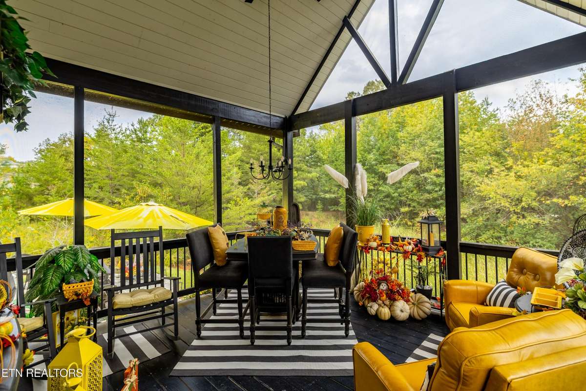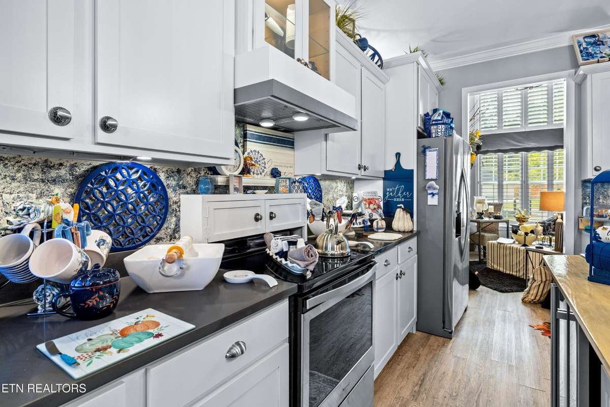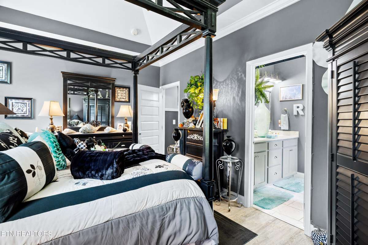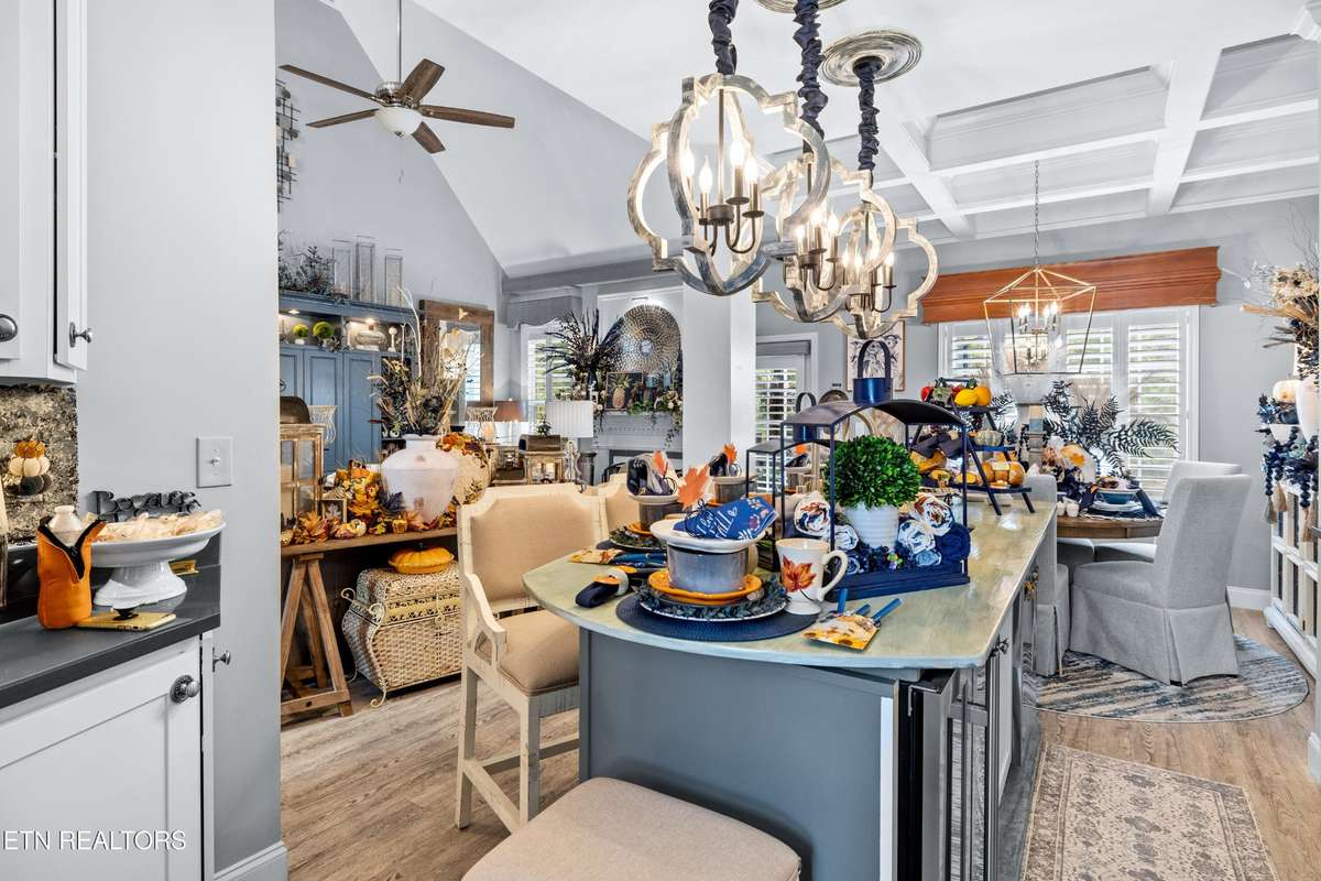 Welcome to this beautiful Lenoir City home, featuring thoughtfully designed finishes and plenty of living space. Inside you will find interior trim details that include crown molding, wainscoting, 5- panel molded doors, decorative beams in the living room and a coffered ceiling in the eat- in kitchen. The main- level primary suite features a grand trey ceiling with crown molding, a jetted tub, walk- in tile shower and walk- in closet. The kitchen is open to the living room with a large island, perfect for entertaining. Stainless steel appliances, including the refrigerator and wine fridge, complete the kitchen. Custom shutters and blinds accent every room including the garage. All bedrooms including the great room and bonus room have ceiling fans. Cable is hardwired in all rooms and the garage. The dining room can also serve as a sitting area or home office. Upstairs offers two additional bedrooms and one bath, plus a large bonus room with a walk- in closet, giving flexibility for guests or hobbies. Outdoor spaces include a screened deck overlooking the retention pond, where summer cattails create a beautiful natural backdrop. The screened deck features additional screening installed beneath the deck boards, plus a vaulted tongue- and- groove ceiling accented by a beam and ceiling fan. It is also pre- wired for cable, making it easy to enjoy TV outdoors. There are multiple flagstone patio areas in the backyard and around the retention pond which are perfect for relaxing and entertaining. Located at the end of the street and within city limits, this home combines comfort, style, and privacy. Buyer to verify all information including square footage.