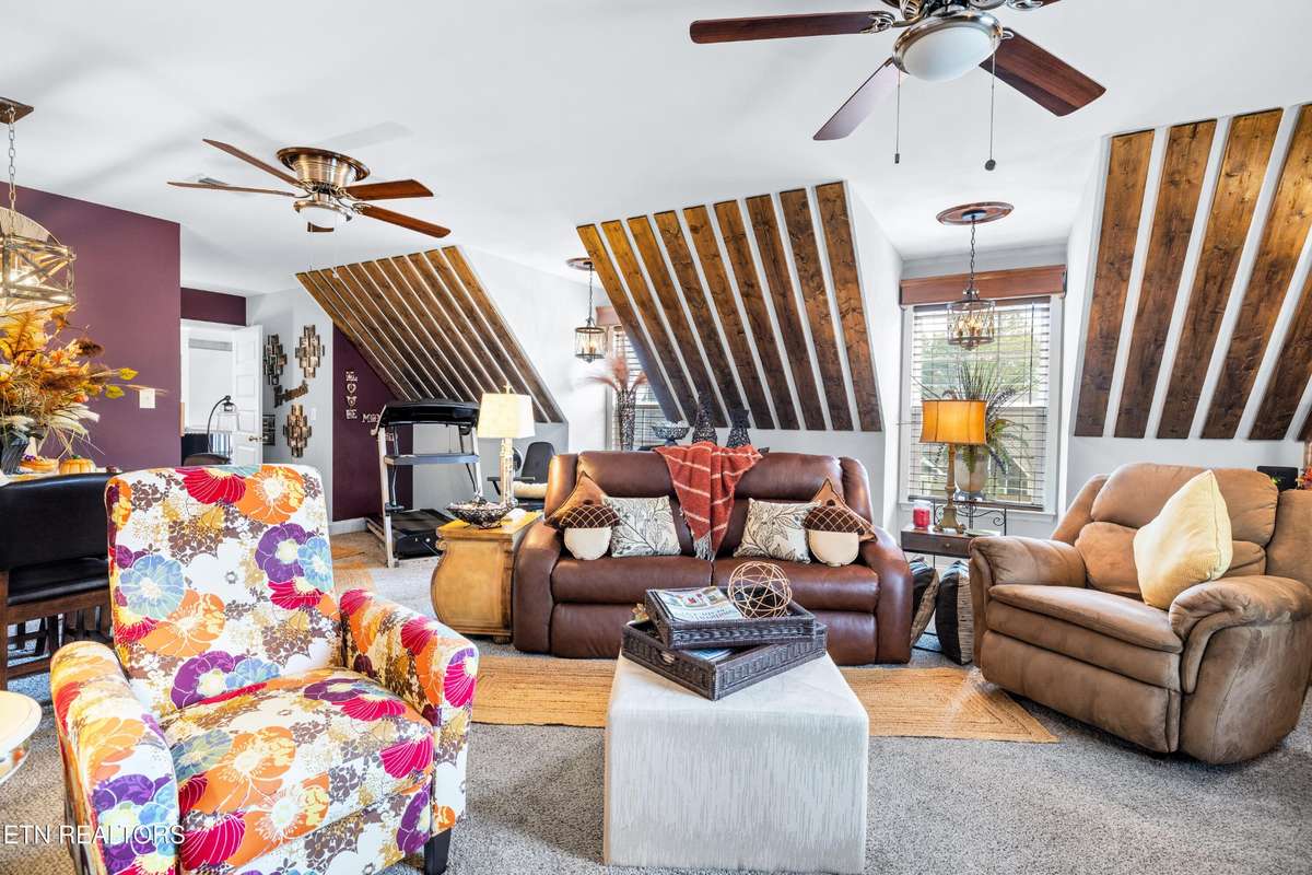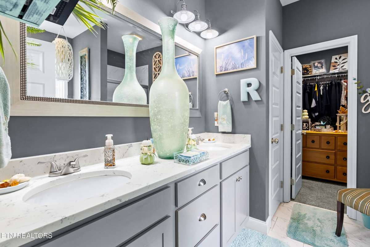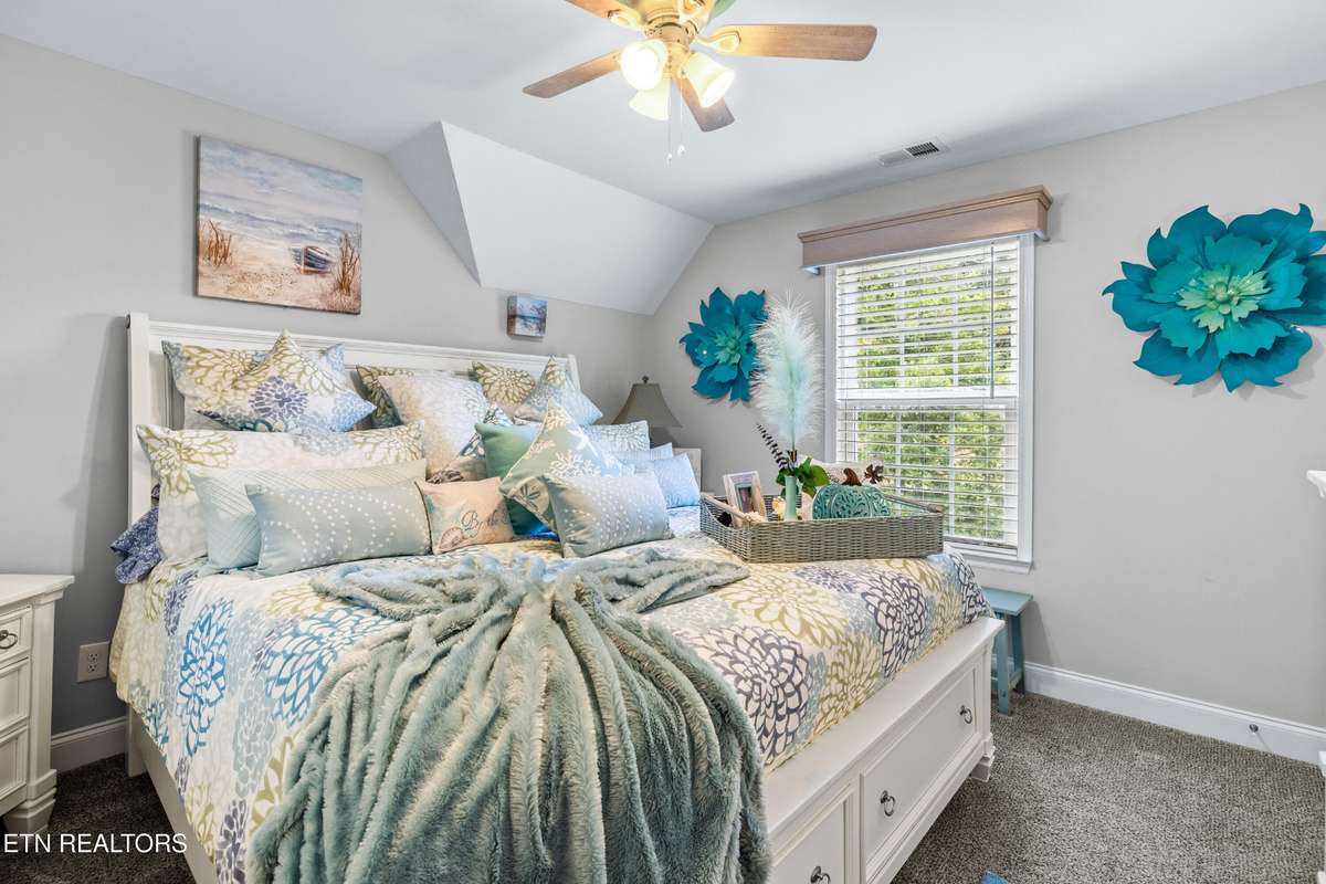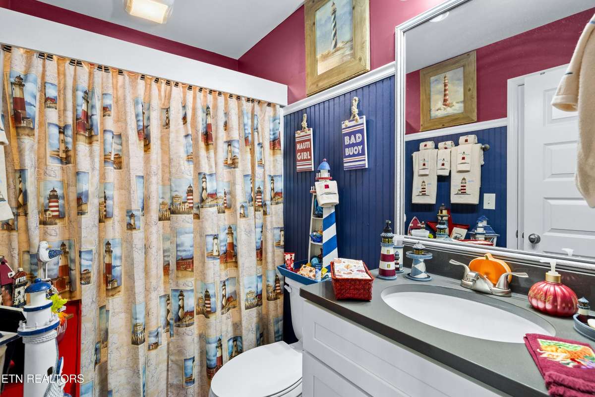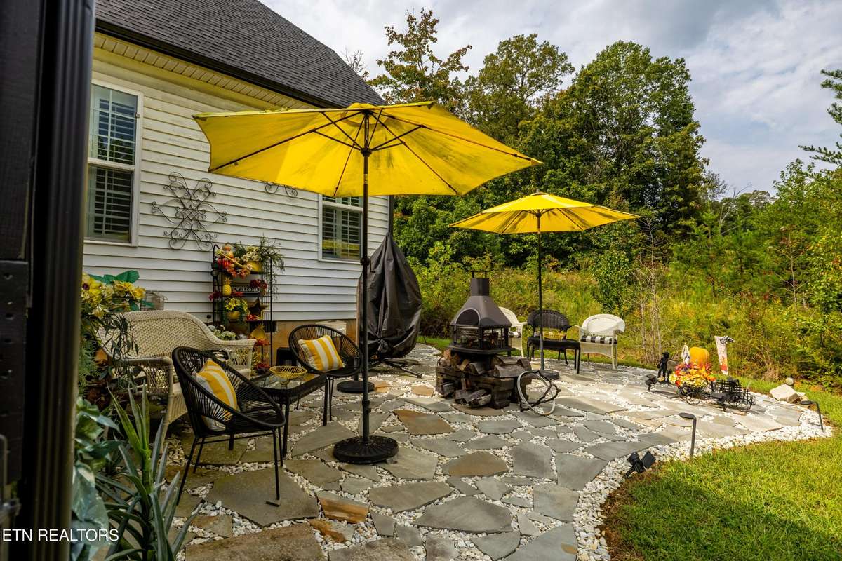 Welcome to this beautiful Lenoir City home, featuring thoughtfully designed finishes and plenty of living space. Inside you will find interior trim details that include crown molding, wainscoting, 5- panel molded doors, decorative beams in the living room and a coffered ceiling in the eat- in kitchen. The main- level primary suite features a grand trey ceiling with crown molding, a jetted tub, walk- in tile shower and walk- in closet. The kitchen is open to the living room with a large island, perfect for entertaining. Stainless steel appliances, including the refrigerator and wine fridge, complete the kitchen. Custom shutters and blinds accent every room including the garage. All bedrooms including the great room and bonus room have ceiling fans. Cable is hardwired in all rooms and the garage. The dining room can also serve as a sitting area or home office. Upstairs offers two additional bedrooms and one bath, plus a large bonus room with a walk- in closet, giving flexibility for guests or hobbies. Outdoor spaces include a screened deck overlooking the retention pond, where summer cattails create a beautiful natural backdrop. The screened deck features additional screening installed beneath the deck boards, plus a vaulted tongue- and- groove ceiling accented by a beam and ceiling fan. It is also pre- wired for cable, making it easy to enjoy TV outdoors. There are multiple flagstone patio areas in the backyard and around the retention pond which are perfect for relaxing and entertaining. Located at the end of the street and within city limits, this home combines comfort, style, and privacy. Buyer to verify all information including square footage.
