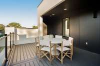 Upstairs, the primary suite feels like a private sanctuary, complete with a spa- level bath and a custom walk- in dressing room designed to make everyday routines feel cinematic. Two additional bedrooms and a spacious flex area round out the second floor, offering versatility for work, play, or creative pursuits. On the top floor, a light- filled bonus room opens to an outdoor porch, complete with a half bath nearby, creating the perfect setting for movie nights, workouts, or sunset cocktails.