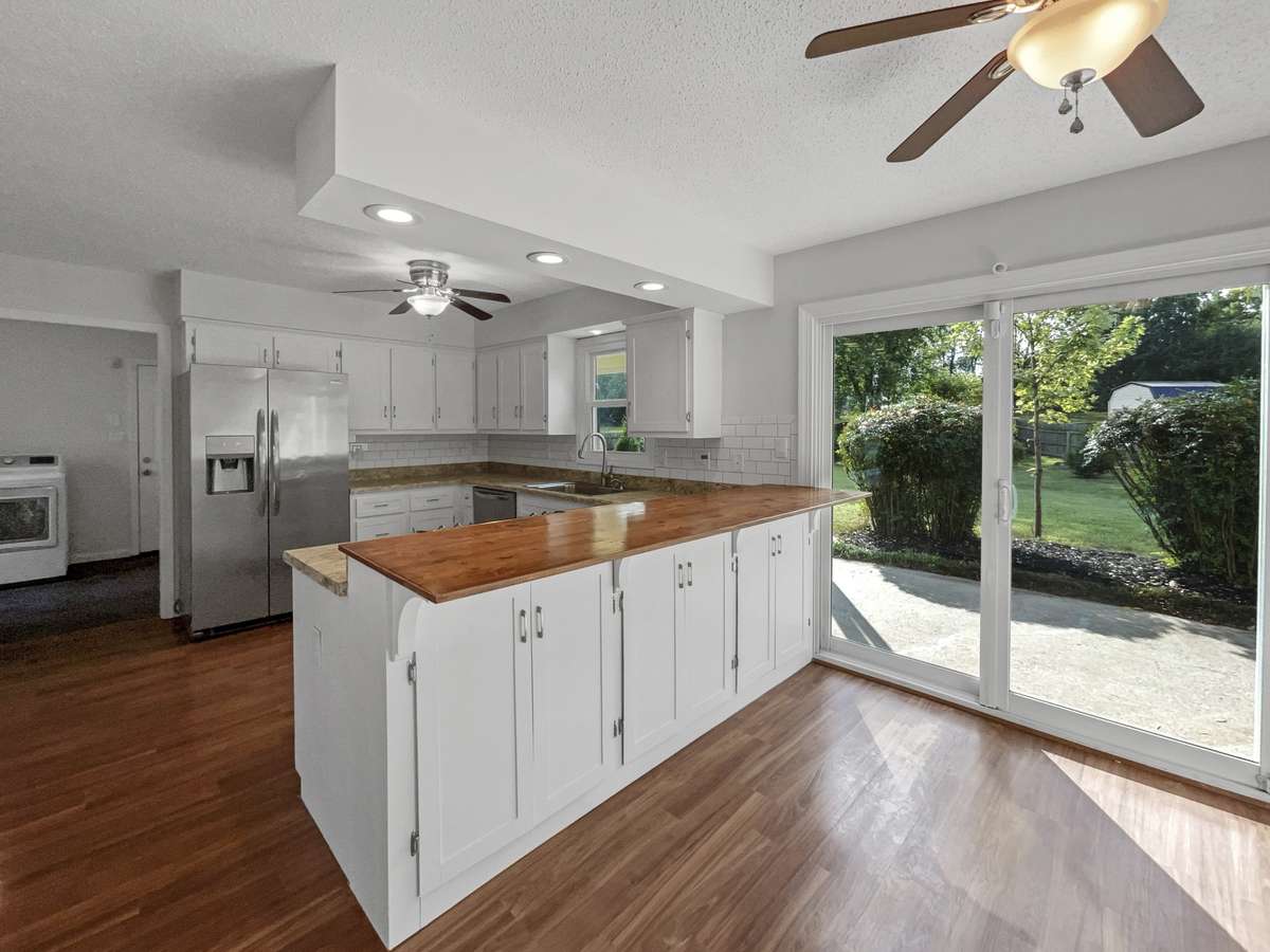 spacious, open floorplan. The large eat- in kitchen boasts stainless steel appliances,