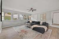 This beautifully updated 3- bedroom, 2- bathroom home offers 1, 742 square feet of stylish living, perfectly combining charm and comfort. Set on a large, landscaped lot with a painted brick exterior, fresh flower boxes, and inviting curb appeal, this home feels welcoming from the start. Inside, the living room provides a cozy gathering space, while the nearby kitchen shines with bright white cabinetry, stainless steel appliances, sleek black countertops, a breakfast bar with a beverage cooler, and an eat- in dining area. The spacious family room/ den is filled with natural light, creating the perfect space for relaxing or entertaining. The primary suite serves as a private retreat with a walk- in closet and a beautifully updated en- suite bathroom. Two additional bedrooms and an updated hallway bath provide plenty of flexibility for family, guests, or a home office. Step outside to enjoy the large yard with fresh landscaping, ideal for gardening or play. Located in a desirable neighborhood, this move- in- ready home blends modern updates, a bright and airy feel, and thoughtful touches throughout, making it the perfect place to call home. Up to 1% lender credit on the loan amount when buyer uses Seller' s Preferred Lender.
