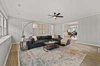 This beautifully updated 3- bedroom, 2- bathroom home offers 1, 742 square feet of stylish living, perfectly combining charm and comfort. Set on a large, landscaped lot with a painted brick exterior, fresh flower boxes, and inviting curb appeal, this home feels welcoming from the start. Inside, the living room provides a cozy gathering space, while the nearby kitchen shines with bright white cabinetry, stainless steel appliances, sleek black countertops, a breakfast bar with a beverage cooler, and an eat- in dining area. The spacious family room/ den is filled with natural light, creating the perfect space for relaxing or entertaining. The primary suite serves as a private retreat with a walk- in closet and a beautifully updated en- suite bathroom. Two additional bedrooms and an updated hallway bath provide plenty of flexibility for family, guests, or a home office. Step outside to enjoy the large yard with fresh landscaping, ideal for gardening or play. Located in a desirable neighborhood, this move- in- ready home blends modern updates, a bright and airy feel, and thoughtful touches throughout, making it the perfect place to call home. Up to 1% lender credit on the loan amount when buyer uses Seller' s Preferred Lender.