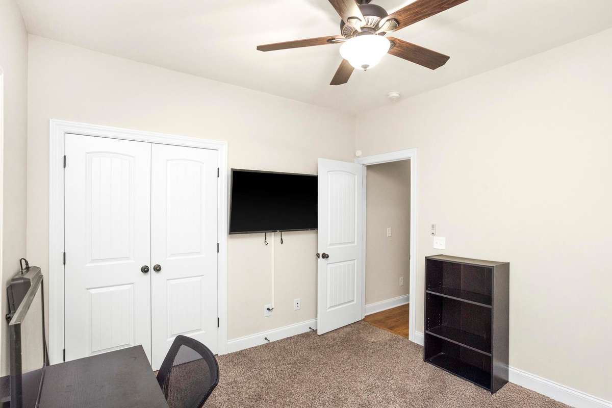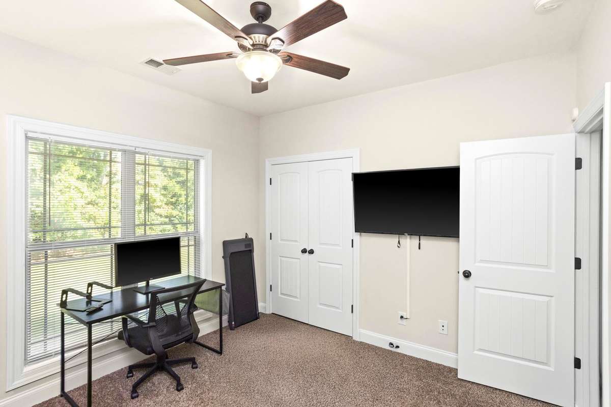 Bedroom 2 located downstairs is currently being used as an office/flex space.