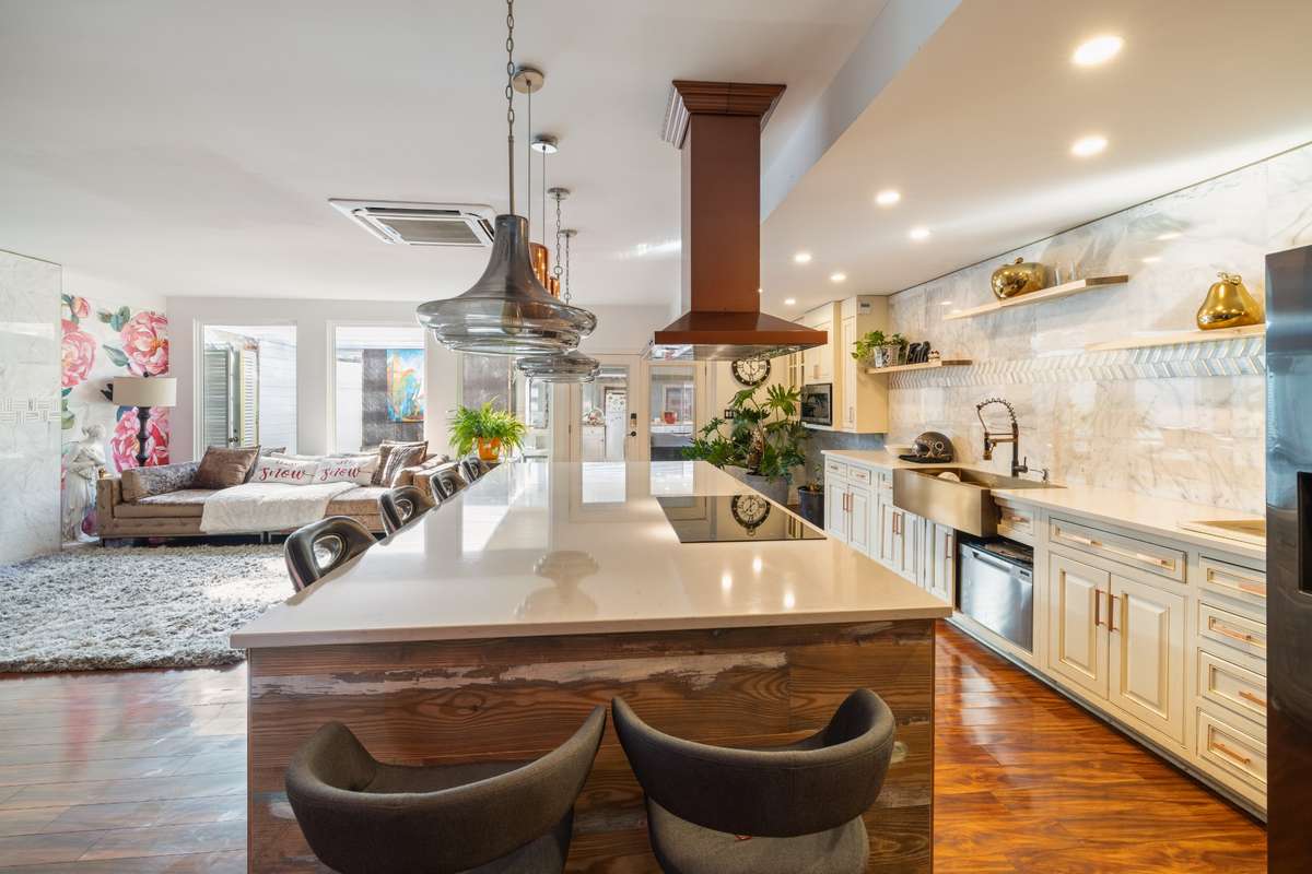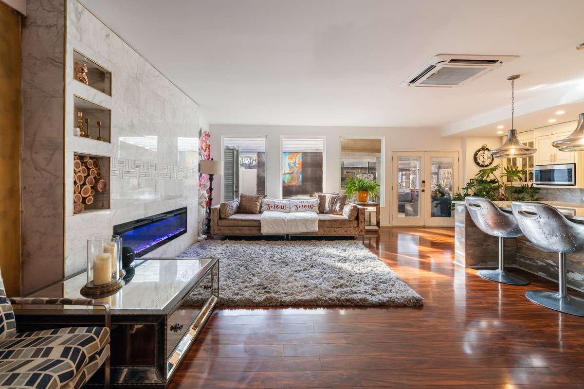 Three units in one: a main house, an in- law suite, and an attached guest house ( ADU) This one- of- a- kind property featuring all- brick and hardboard construction with luxurious finishes throughout, including hardwood, marble, and tile floors, perfect for a single family with an income unit or multigenerational family. [ Sections of home divided by exterior pics]
