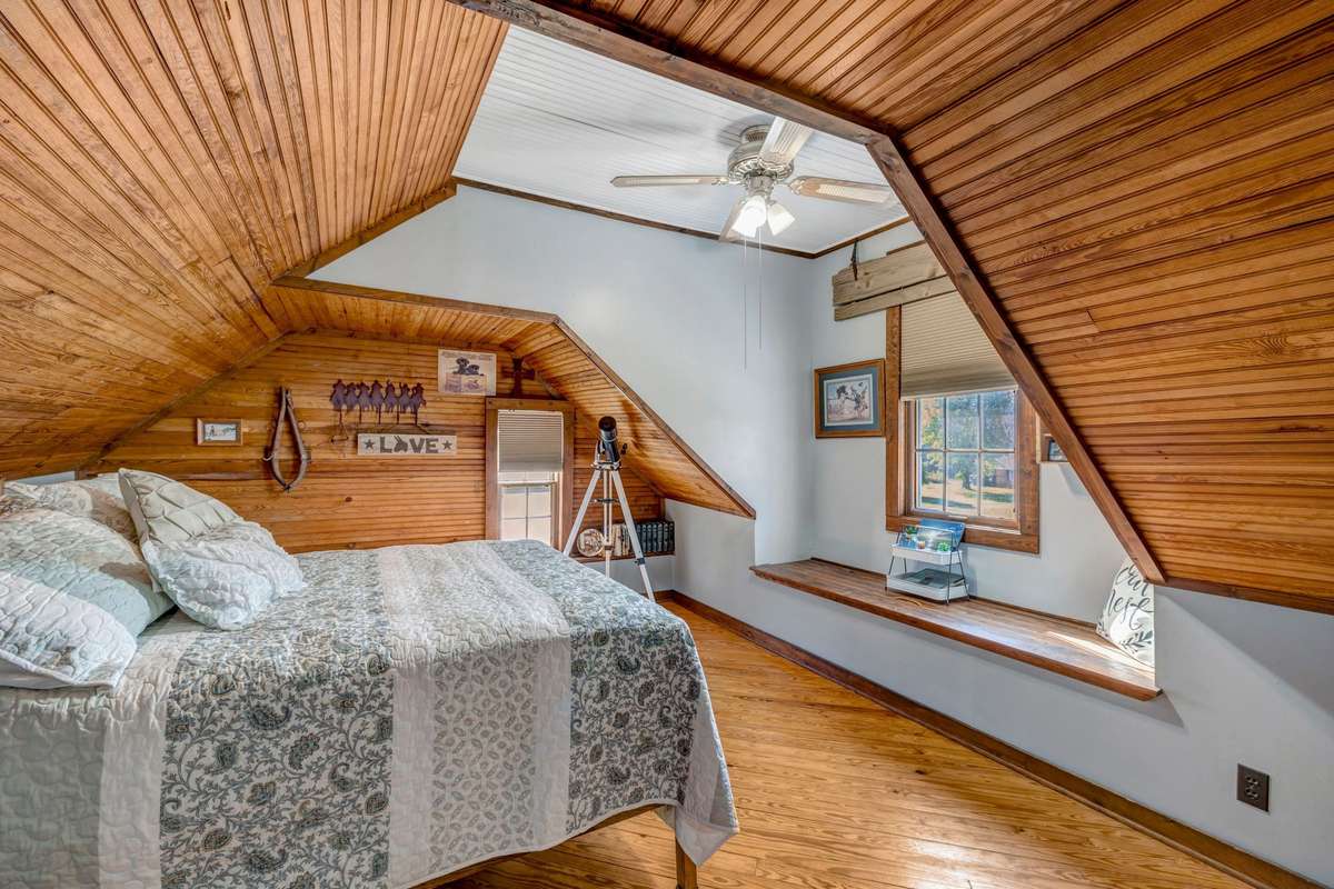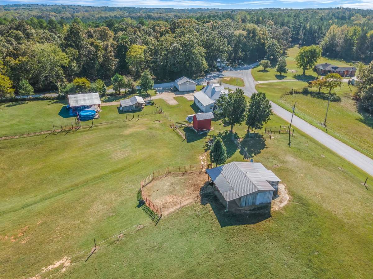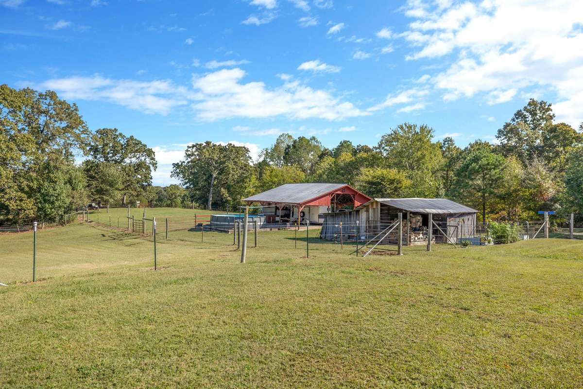 Designed for those who value land and lifestyle, the property includes a 3- stall horse barn with tack room and hay storage, three fenced pastures, a large pole barn, and a two- car detached garage with oversized attic storage. An original smokehouse with an underground storm shelter adds both character and functionality.