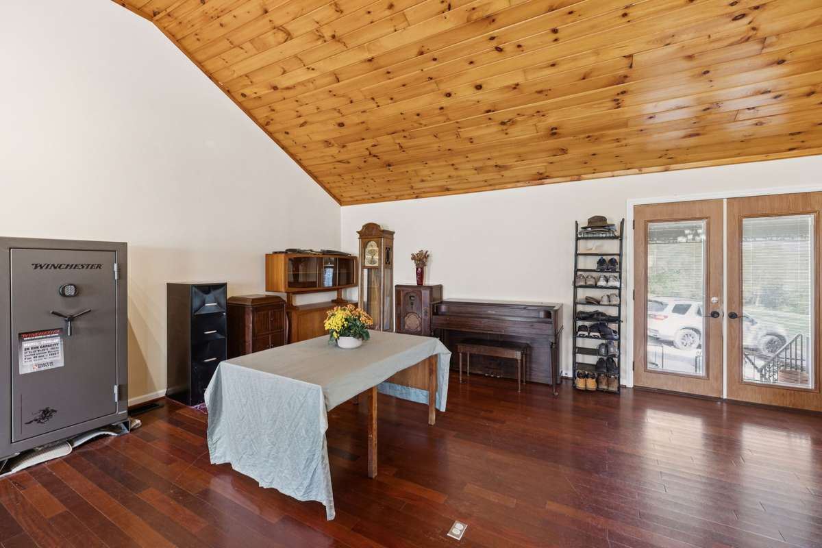 Outside, you' ll find a mix of mature trees and open spaces, offering both privacy and room to roam. The property includes a large shop with electricity, ideal for hobbies, storage, or a workspace, as well as an equipment shed that currently houses a tractor and implements. An additional area on the property has been marked as a favorable perk site, offering potential for future expansion.