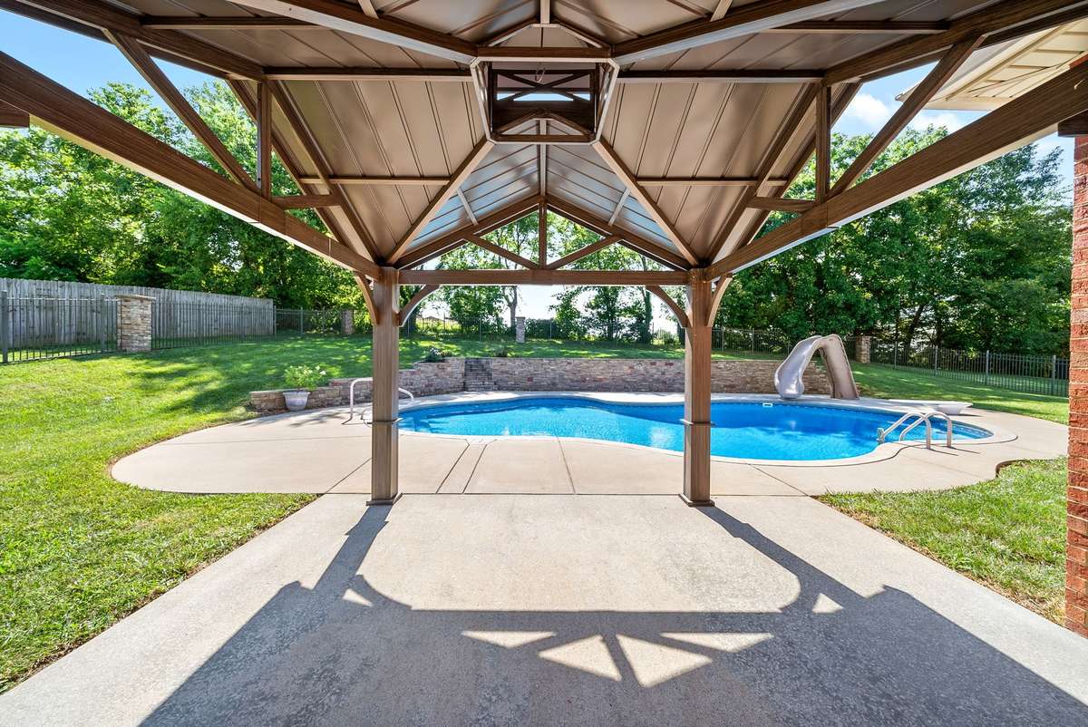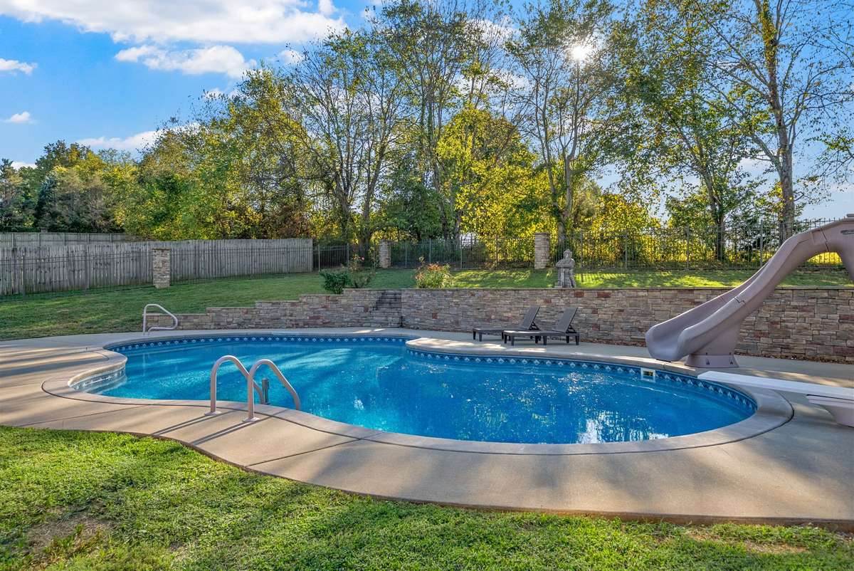 Wow! Immaculate Entertainers Dream Home in the desirable Plantation Estates neighborhood of Pleasant View! Tons of upgrades! This home features an oversized 8. 8ft deep salt water in- ground pool with brand new pool liner, new sand filter, new SWG generator in 2024, diving board and pool slide! The well landscaped backyard is completely fenced with a luxury aluminum and stone pier fence line. No Backyard Neighbors, backs up to a tree line and farm. Built in Pergola for shade on the back pool deck! 4 bedrooms, 3. 5 baths, plus an office with full bath! The primary suit is on the main level with trey ceilings, an ensuite bathroom featuring separate toilet closet, garden jacuzzi tub, double sinks, separate shower and double walk- in closets connecting through bathroom. Two giant bonus rooms with closets, storage, and a half bath upstairs! Upgraded can lighting throughout, built- in bookshelves for display above the fireplace, surround sound speakers on main level. A large sunroom / Florida room off the back of the house with view of pool and cellular insulated sun shades! New 3 ton HVAC and heat pump in 2023, re- pitch rain gutters, an active radon system. Plenty of extra space for extended family and friends to live or visit. Too much to name, you have to come see this gem in person. Home has been well taken care of by owners and is move- in- ready!