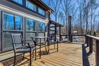 The property boasts just under a half acre lot with plenty of room to entertain, including a fire pit and a built- in swing for two just right for watching the sunset across the water. With a large wraparound deck, the picturesque surroundings can be shared with groups of friends, big or small. If you are looking for even more property, the adjacent lot is available for sale separately as well.