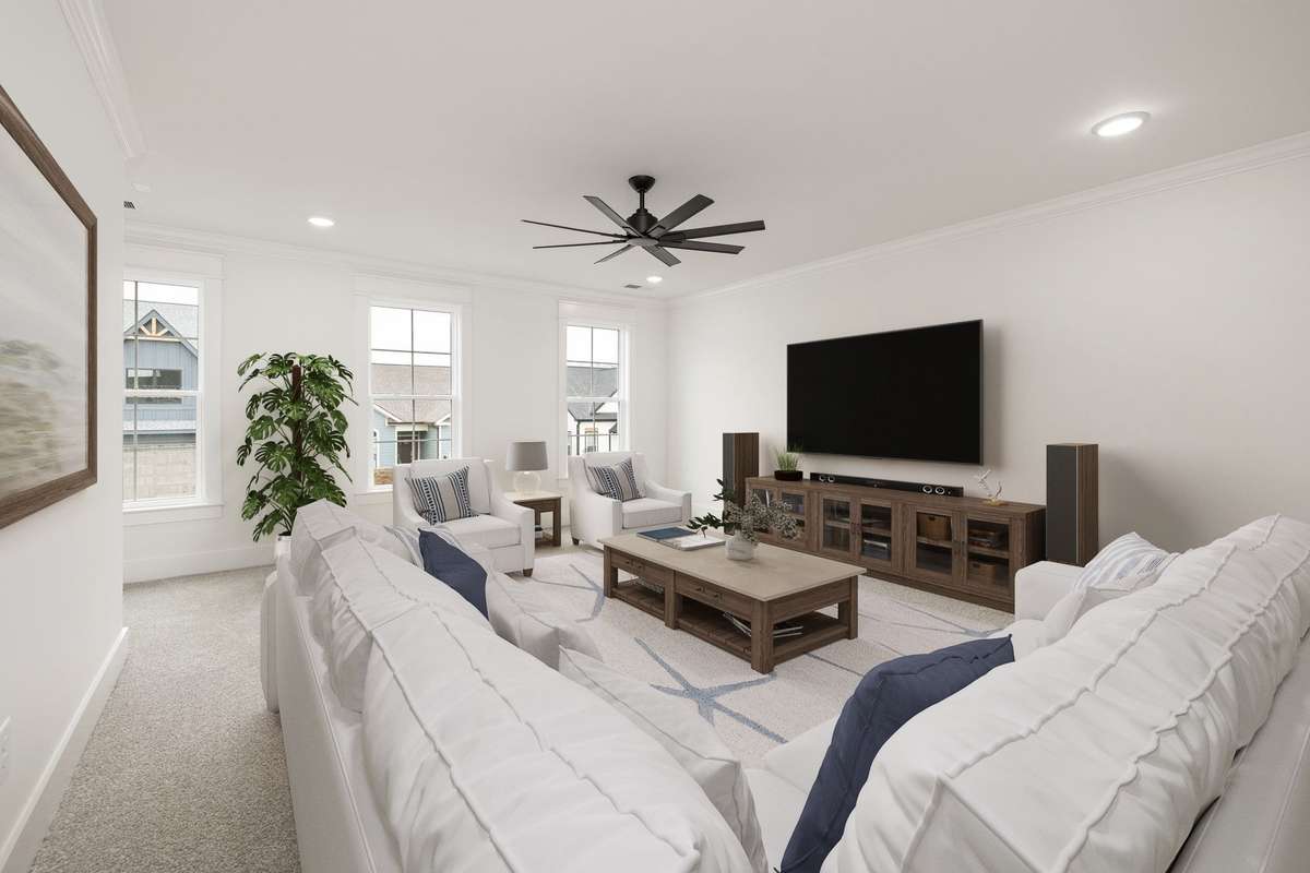 The main level features a dining room, a gourmet kitchen with island seating, a spacious great room with a cozy fireplace, and a serene primary suite with a spa- like bath offering a separate tub and shower. Upstairs, you’ll find three additional bedrooms — including an adorable bunk room — plus a versatile bonus room perfect for movie nights or extra guests.