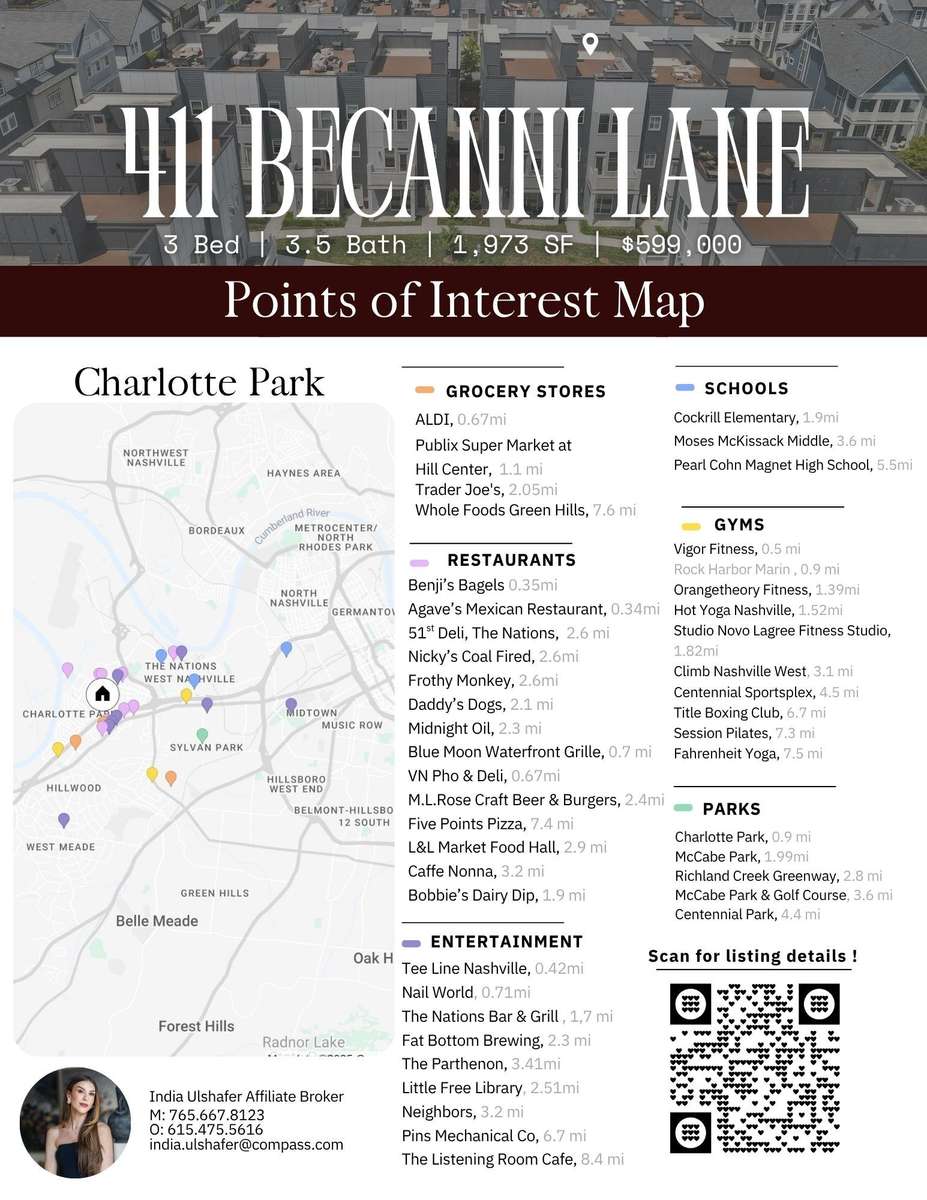 If you’re seeking thoughtful design, low- maintenance living, and a location that offers the best of Nashville without the bustle, 411 Becanni Lane gives you the peace and comfort you crave. All while delivering the ease of proximity you’ll love. Come see what life looks like here.