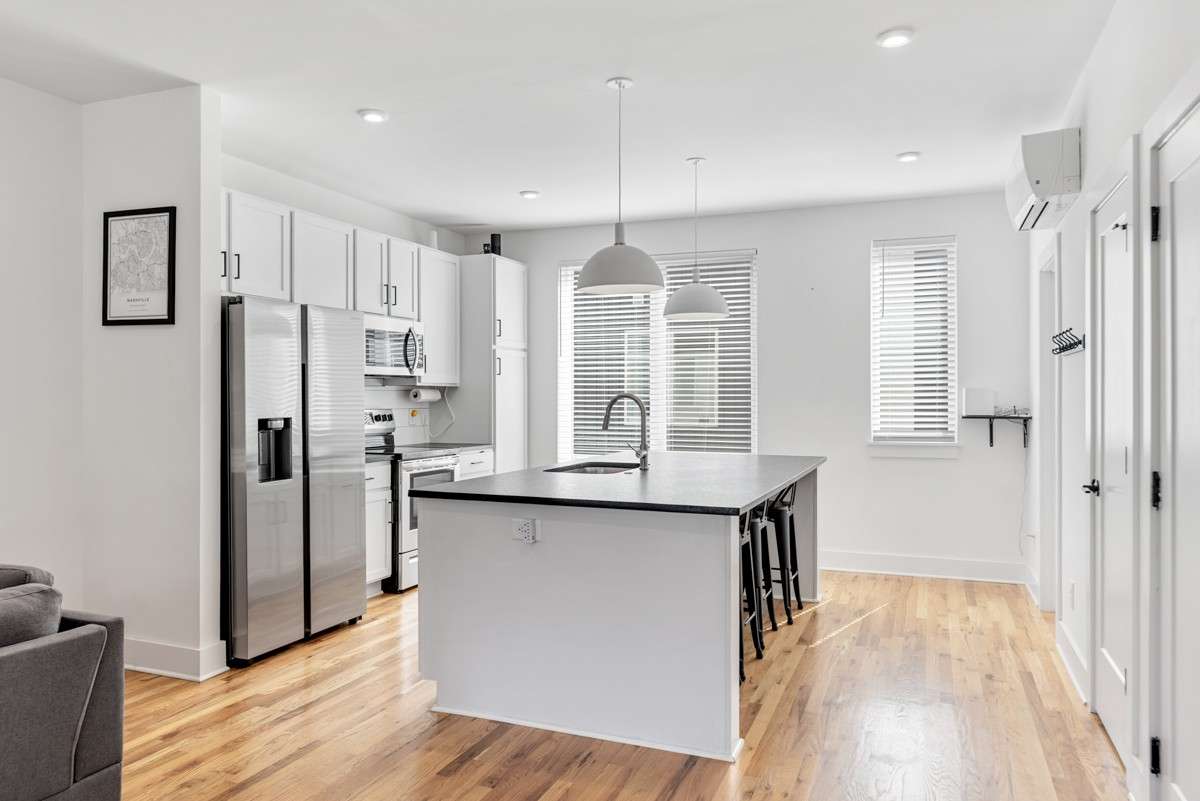 *** Preferred Lender Incentive: FHA/ VA rate of 5. 49%*** Experience the best of city living in this stunning townhome located in Nashville’s vibrant River District — right next to the exciting proposed Riverside Development! This home feels like new and has real hardwood floors throughout. The spacious owner’s suite spans the entire top floor and features a private deck with sweeping city views! Enjoy quick access to downtown Nashville with just a 10- minute commute across the Martin Luther King Jr. Memorial Bridge. A two- car garage provides plenty of parking and storage space, and the washer, dryer, and refrigerator all remain — making this home move- in ready. Don’t miss this opportunity to own a beautifully maintained home in one of Nashville’s fastest- growing areas!