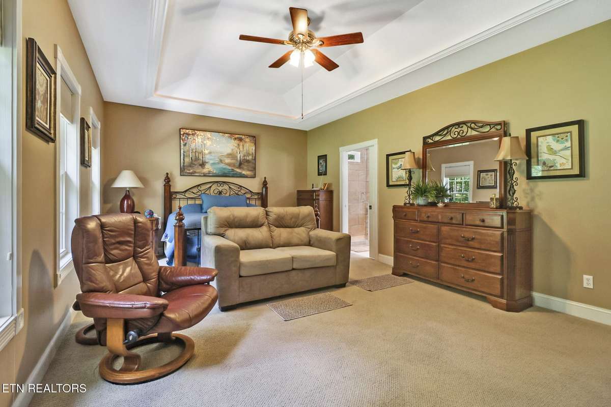 HERE IT IS!! ! A MAGNIFICENT HOME IN THE COUNTRY BUT ONLY 5. 4 MILES TO INTERSTATE 40 IN CROSSVILLE. LITERALLY MINUTES FROM SHOPPING AND RESTAURANTS!!!!! ! This is a Gorgeous, secluded home, sitting high on top of the Cumberland Plateau. Tucked away in the quiet, desirable Sunset Ridge subdivision, this 2, 190 sq ft home offers both comfort and charm. It has an open floorplan with beautiful hardwood floors and wonderful views of wildlife in this parklike backyard. There are also great views from the covered back porch of the backyard. The great room has cathedral ceilings and a wonderful flow through the living room, kitchen and dining area. There are 2 bedrooms on the main floor and 2 full bathrooms. The huge master suite has beautiful trey ceilings and is large enough to comfortably fit a nice sitting area. The master bath has beautiful tile, and a spacious walk- in shower, a large linen closet and a nicely laid out walk- in closet connected directly to the bathroom. The guest room is very spacious and comfortable with a high cathedral ceiling and lots of natural light. The upstairs offers a bonus room that would make an ideal family room, office, or guest retreat. There is plenty of room for any activity and a very nice full bath. The oversized two car garage has plenty of storage room and an extra pantry. There is also a nice workshop area inside the garage. There is a 12x30 Covered RV / Boat pad very nicely situated for easy parking with a 30 amp power hook up. The woodshed is one that I believe rivals any I have ever seen. This whole property has a very private appeal and has great attention to detail. It is a true place of beauty and peacefulness. Set back in a private section of the subdivision, this home offers a quiet escape while still being close to everything. This is truly a must see to appreciate. Like having your own park.