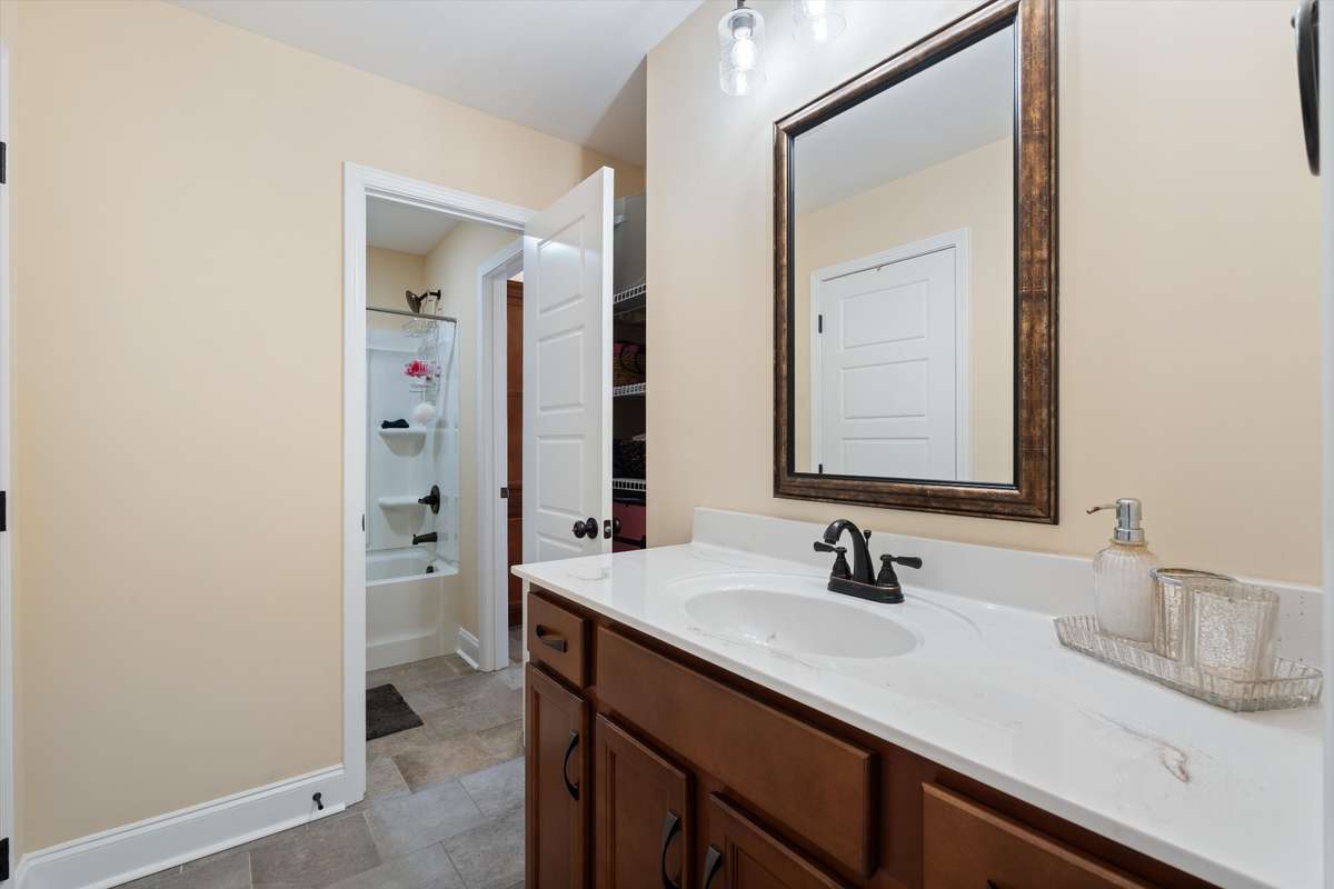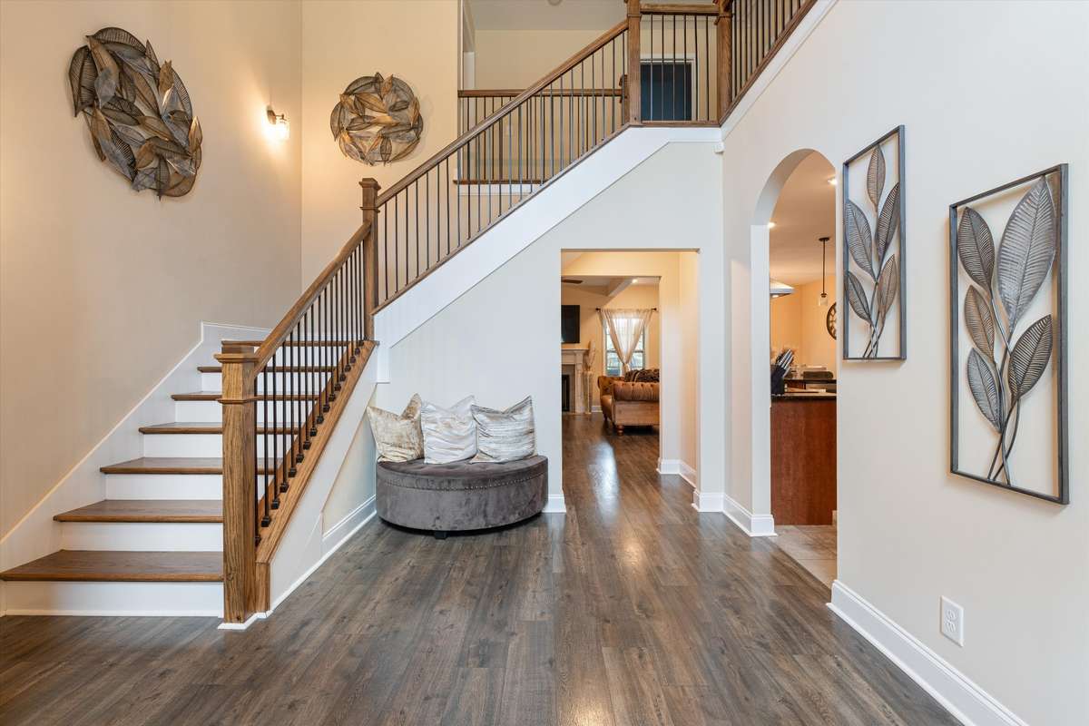 Welcome to 823 Shady Bluff Trail, a one- of- a- kind beautifully built brick custom home in Clarksville. The main level features both a primary suite and a guest suite each with a full bathroom. Continue to the private office or study, laundry room with sink, large kitchen and seperate formal dining room perfect for holidays and dinner parties. Primary boasts a separate entrance to back patio, tile shower and separate tub, and a custom built closet. The second level has 3 spacious bedrooms with 2 bathrooms and walk- in closets. Theater room is perfect for entertaining and relaxing with a door to the large attic space with walk in access. Enjoy outdoor privacy living which backs to a tree line. Home includes a long driveway and 3 car garage. All appliances and security system will convey with property. Schedule your private showing today!