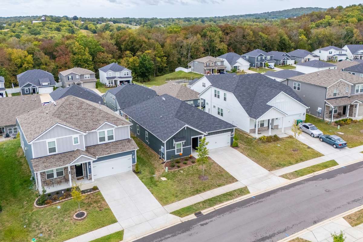 A two- car garage provides room for storage, and the backyard is flat with room for outdoor seating. The community has sidewalks, a playground, and green spaces. Wilson County schools are assigned, and HOA fees are $ 45 a month covering common area maintenance.