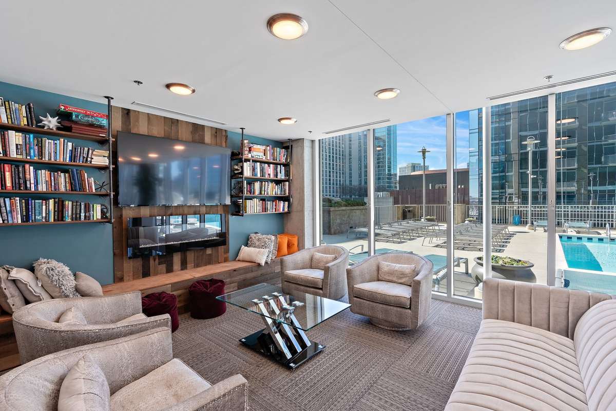 resort- style perks: 24- hour concierge ( your human google for packages, reservations, dry cleaning) , a heated pool with sundeck, fire pit, and stainless outdoor grills—basically your vacation spot, year- round. state- of- the- art fitness center, game room, and a movie theatre room ( popcorn not included) , business center + building- wide wifi included in the HOA ( because working from home should still feel first- class) .