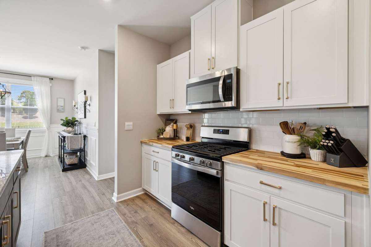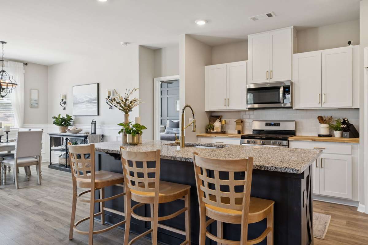 Additional features include granite countertops, white cabinetry, 2- inch wood blinds, ceiling fans, a smart home package, alarm system, fenced yard, upgraded landscaping, and so much more—all with a maintenance- free yard.
