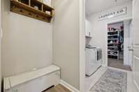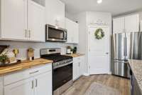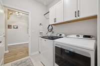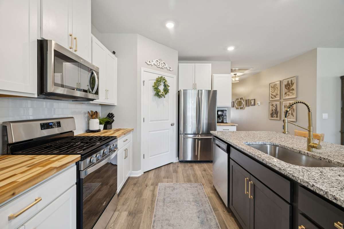 Step inside to discover an upgraded kitchen featuring butcher block countertops, a farmhouse sink, a custom kitchen island, and beautifully updated lighting and hardware. Throughout the home, you’ll find custom accent walls, thoughtful finishes, and smart storage solutions—including laundry cabinets with a sink and custom closet organizers in the primary suite.
