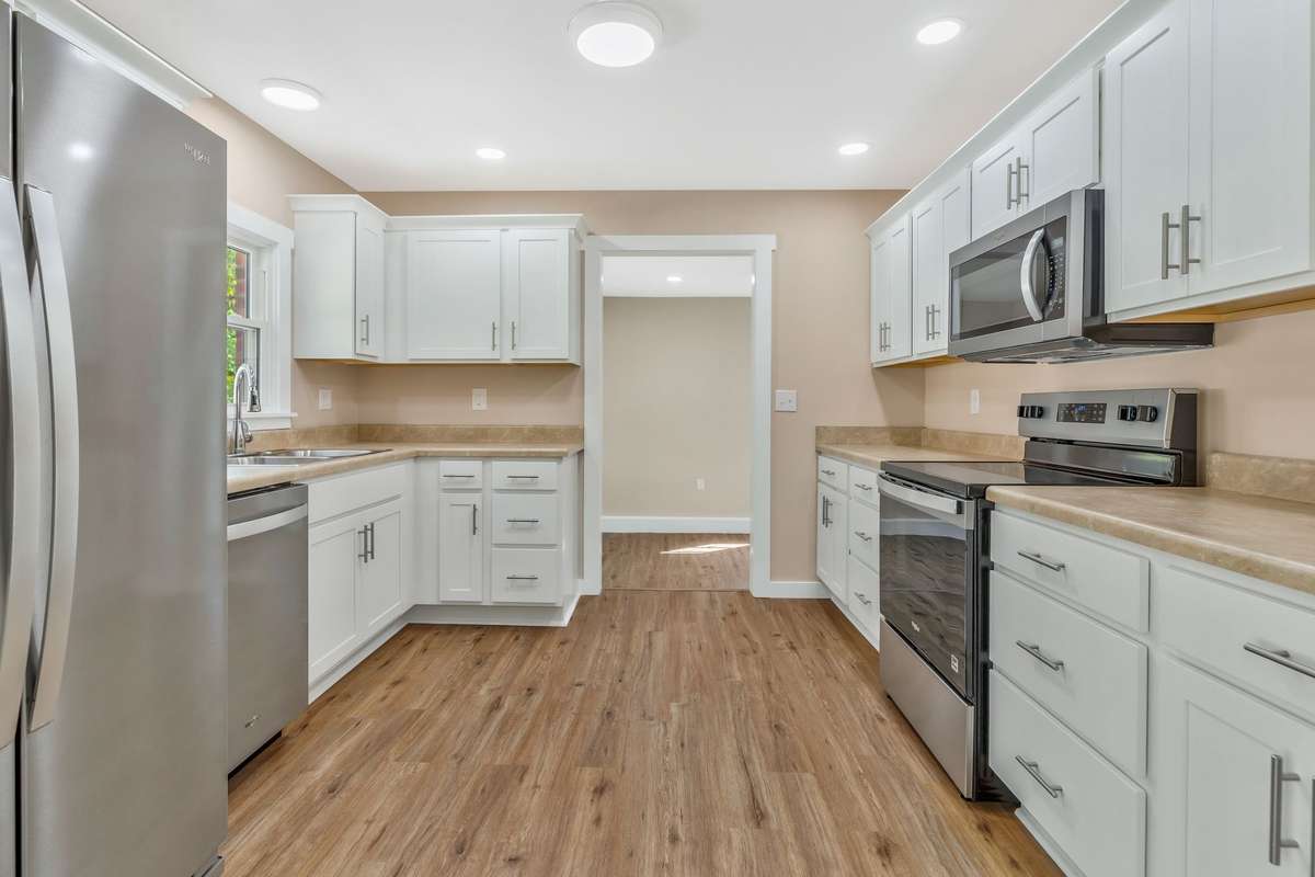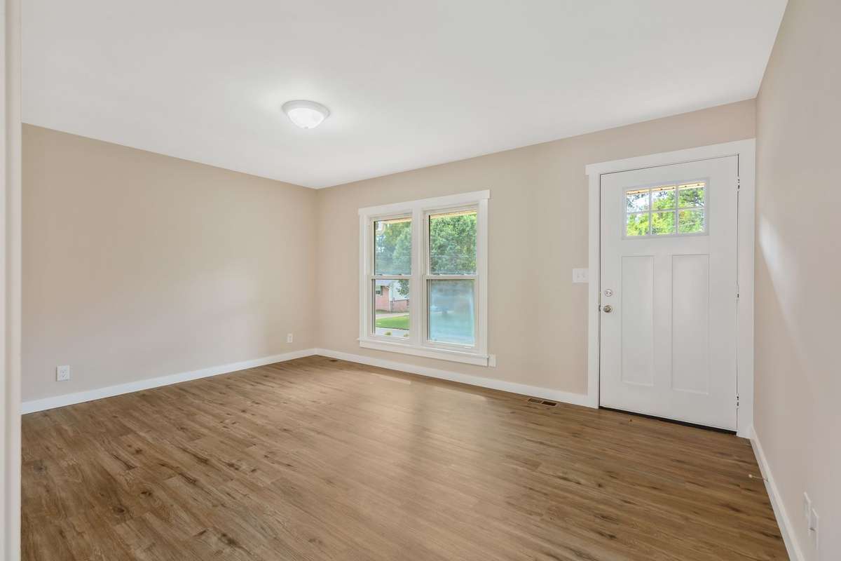 Stunning renovation on this all brick home offering 1439 SF all on one level. 3 bedrooms, 1. 5 baths, spacious living room and a totally new kitchen, redesigned with an additional wall of cabinets and generous workspace. Everything is new - laminate flooring, paint, light fixtures, shaker trim on windows & doors, interior doors and more. Kitchen has new custom cabinets, sink, faucet, stainless appliances. Garage has been converted to a cosy den with bay window. 2 car DETACHED garage and fully fenced back yard. Roof is approximated 2 years old & HVAC is approximately 4 years old. This is a beautiful home!