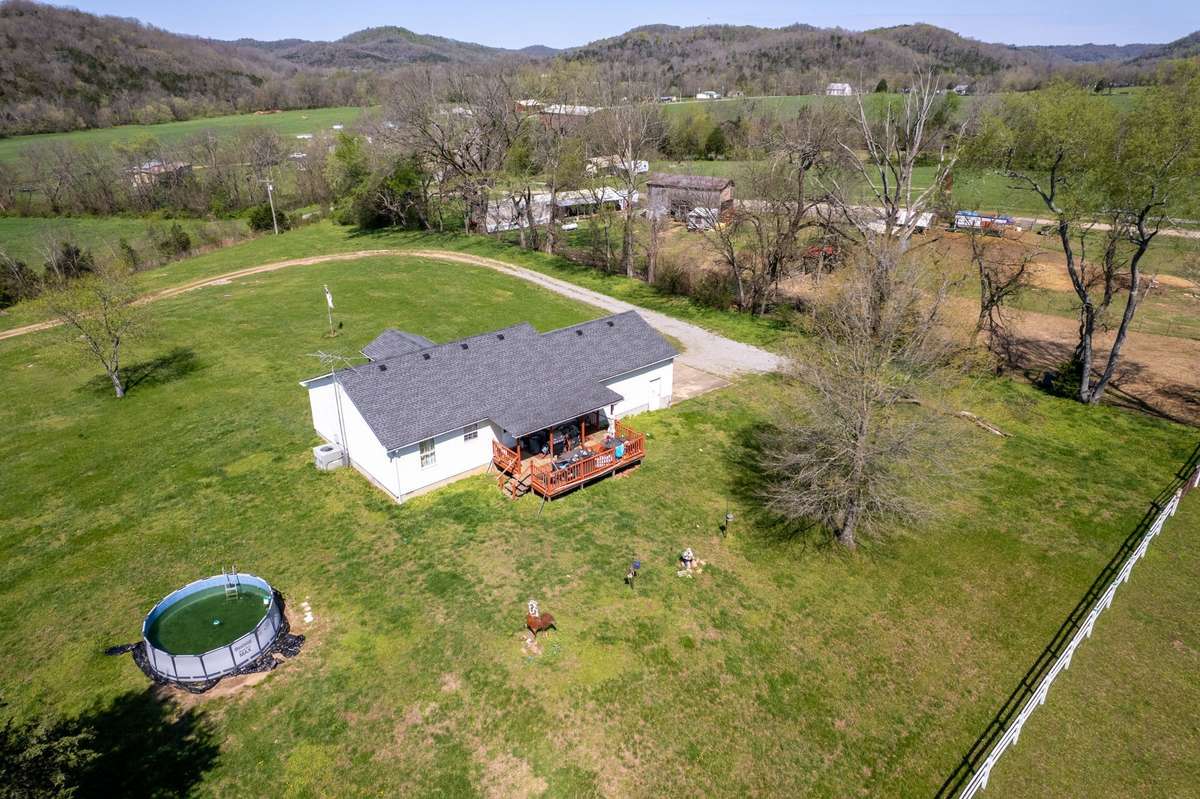 The main home is a 1, 200 sq. ft. , 3- bedroom, 2- bathroom house with a comfortable layout and beautiful views. Also on the property is a 30x30 barn, a large workshop, and a double- wide that offers additional living space—perfect for extended family, rental income, or renovation into a guest home. A 3th property could easily be added.