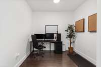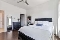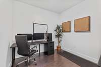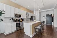 Bathed in natural light, this inviting home features 10- ft ceilings, gleaming hardwood floors, and an oversized kitchen island surrounded by stainless steel appliances—ideal for entertaining or enjoying quiet nights in. A flex space provides the perfect nook for a home office or reading corner, while the spacious walk- in closet and peaceful top- floor setting ensure privacy and tranquility.