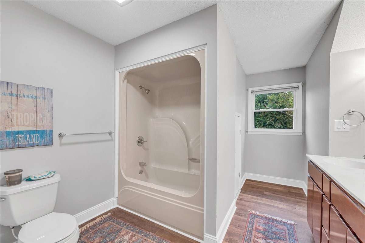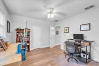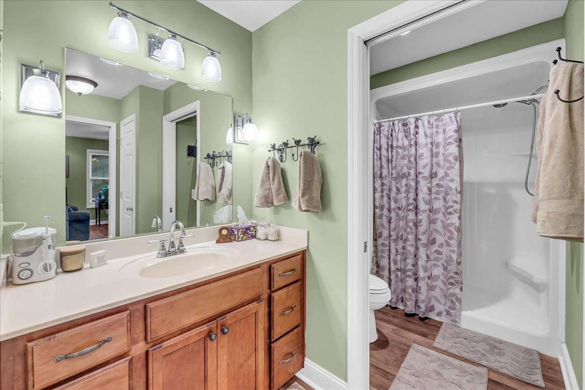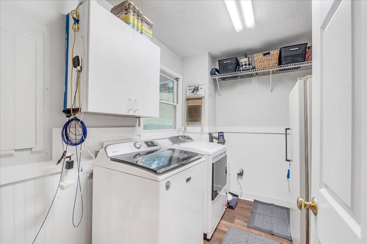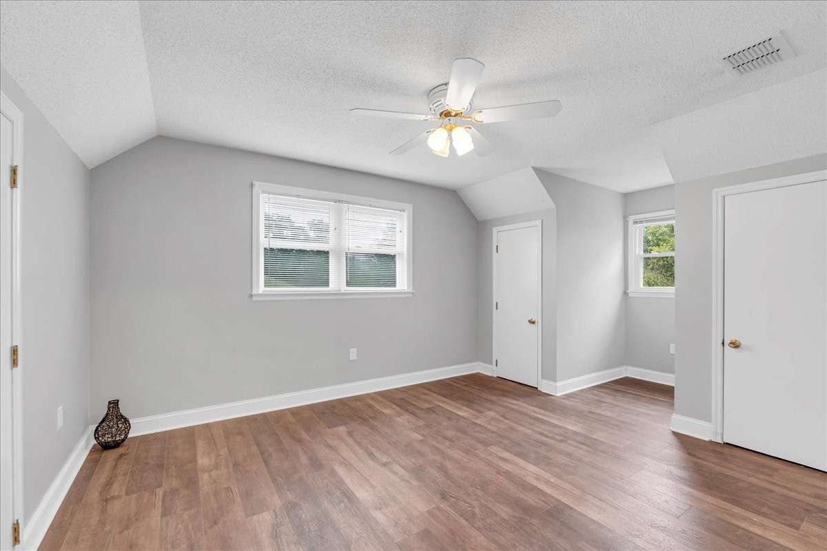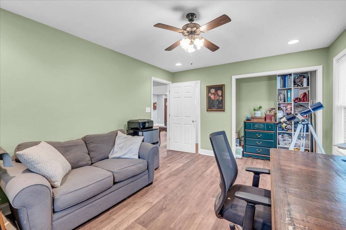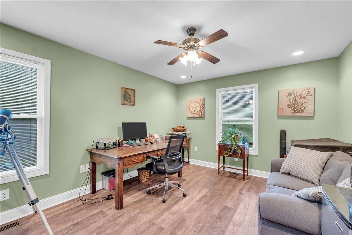 The home offers two bedrooms conveniently located on the main level, with additional bedrooms upstairs providing flexibility for guests, office space, or hobbies.